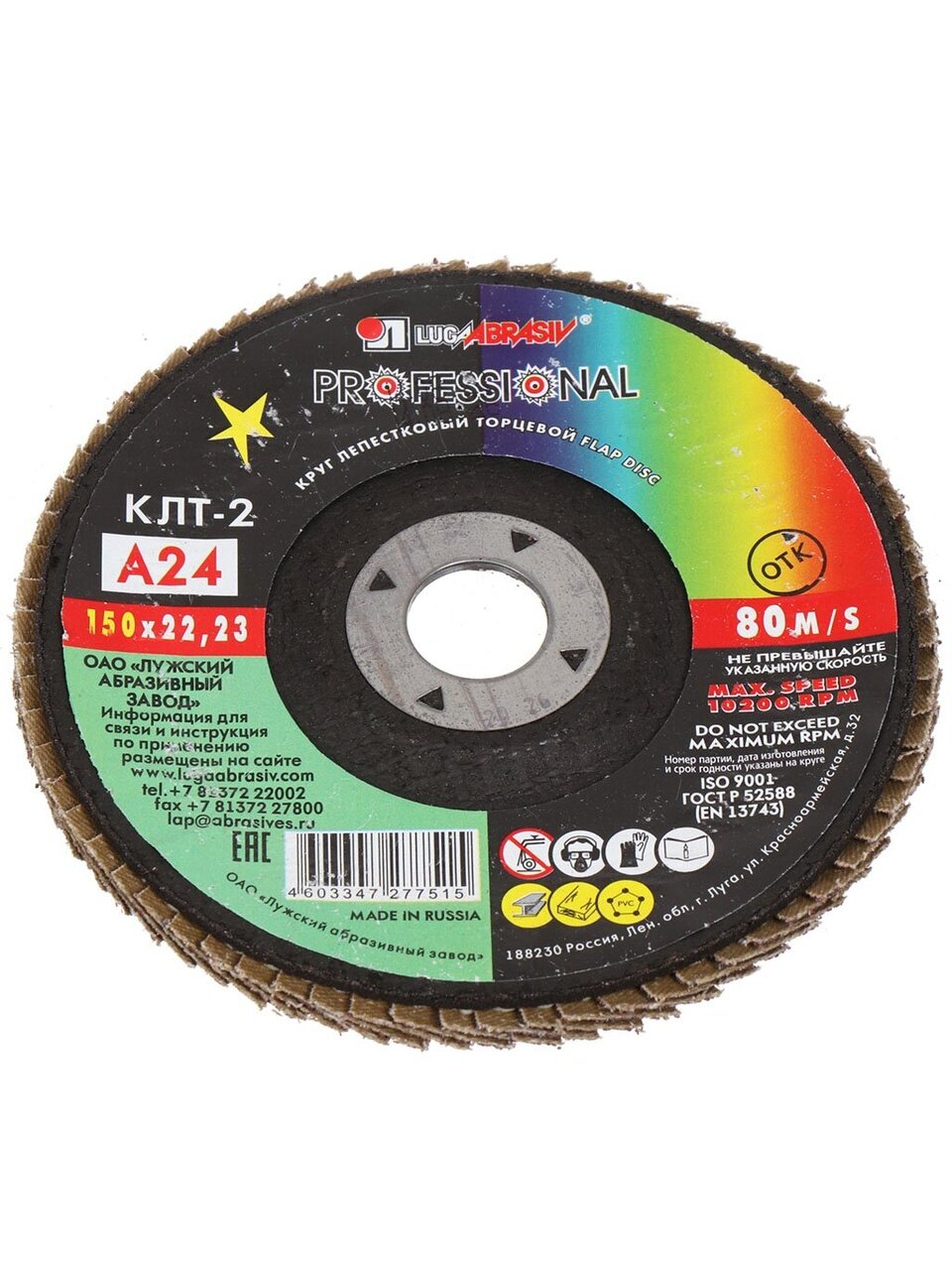 Вы можете приобрести «Круг лепестковый торцевой КЛТ2 для УШМ, LugaAbrasiv, диаметр 150 мм, посадочный диаметр 22 мм, зернистость A24, шлифовальный» и другие товары в нашем интернет-магазине в Клинцах по низким ценам и с бесплатным самовывозом.