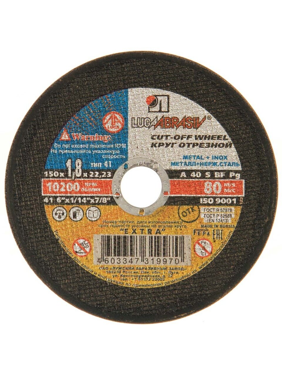 Вы можете приобрести «Круг отрезной по металлу, LugaAbrasiv, Extra, BF, диаметр 150х1.8 мм, посадочный диаметр 22.23 мм, зернистость A40, S 80 м/с» и другие товары в нашем интернет-магазине в Россоши по низким ценам и с бесплатным самовывозом.