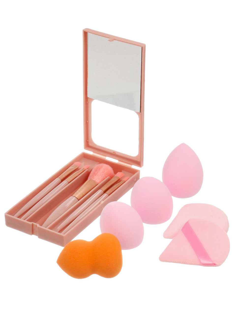 - Практичные материалы: кисти с мягким ворсом и прочной ручкой, спонжи из гипоаллергенного латекса, рассчитаны на частое использование.
