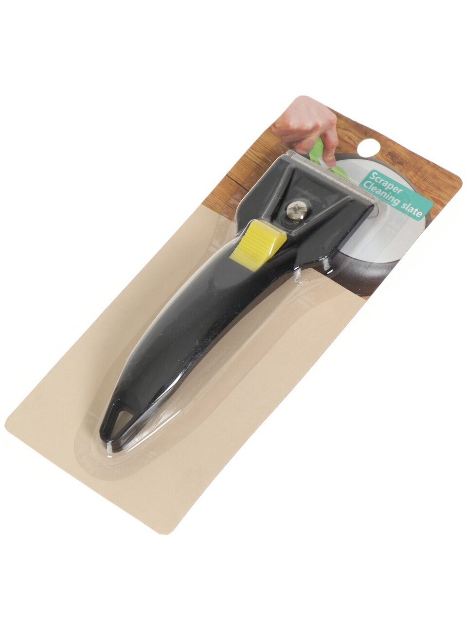 Скребок предназначен для чистки стеклокерамических, стеклянных и кафельных поверхностей от засохших и пригоревших загрязнений. Изготовлен из прочного пластика, а лезвие из металла. Скребок легко хранится и моется. Подходит для индукции, стеклокерамики, а также для кафельных плиток. Для выдвижения необходимо раскрутить гайку, выдвинуть лезвие и снова закрутить. Благодаря такой конструкции скребок является долговечным.