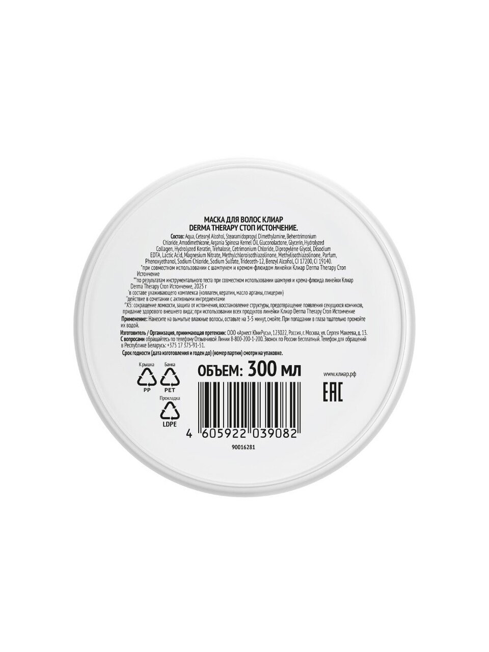 Маска для волос Клиар Derma Therapy Stop-истончение 300 мл: восстановление густоты и прочности волос уже после первого применения. Решение для тонких и ослабленных волос.