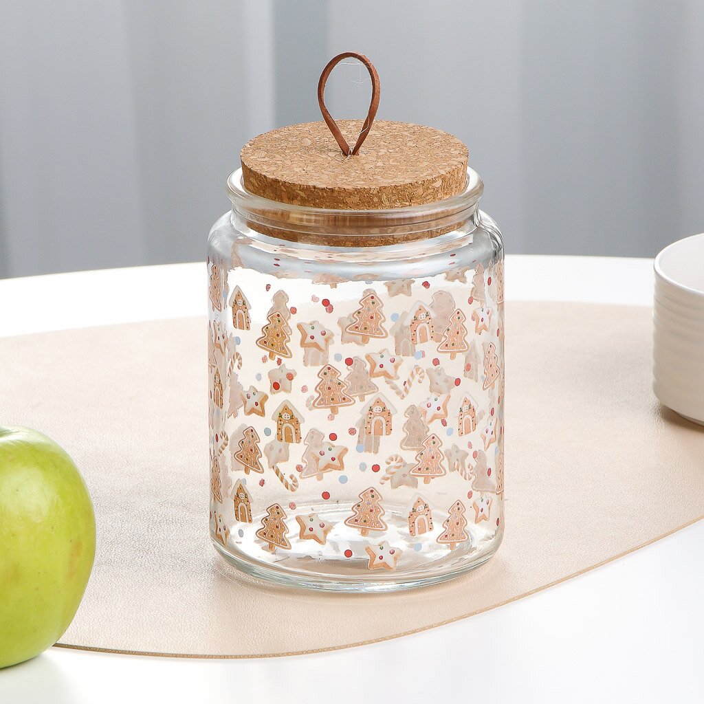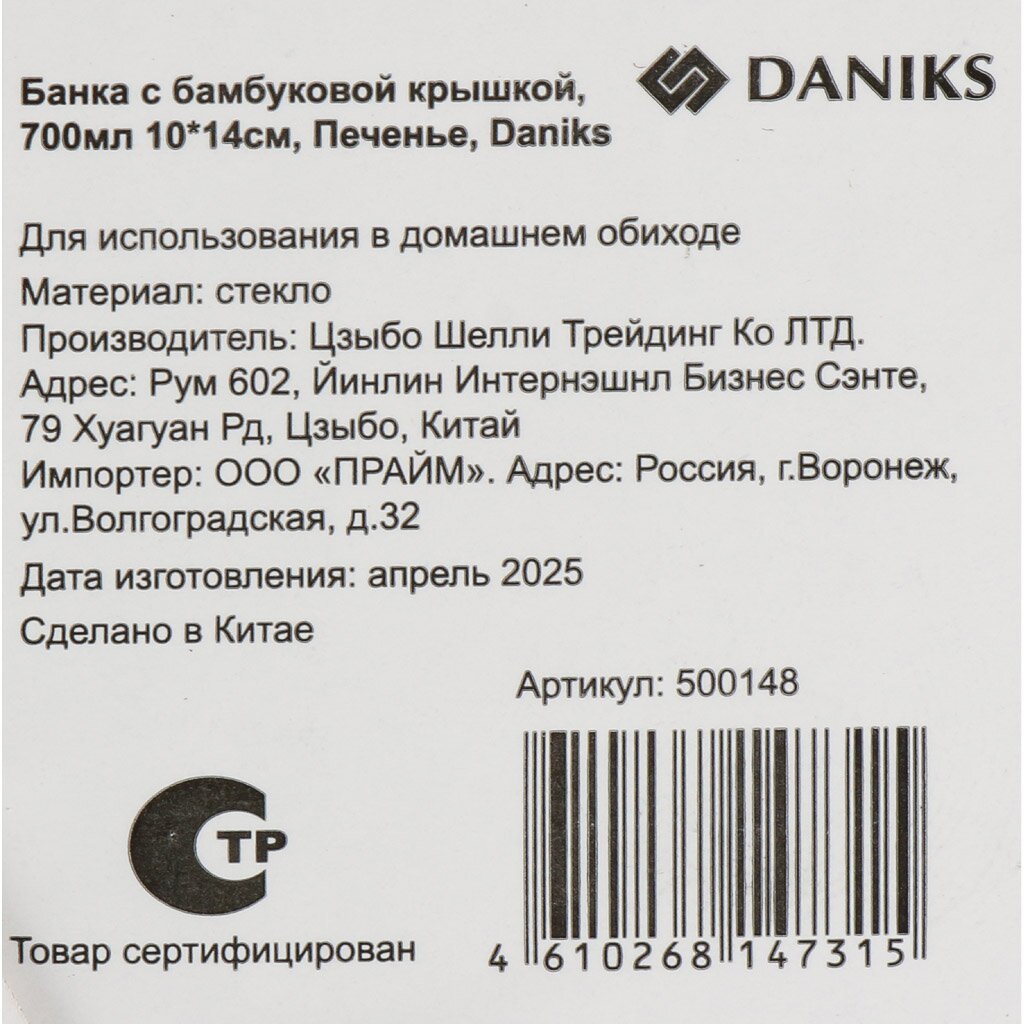 Банка с бамбуковой крышкой, 650 мл 10х14 см, Печенье, Daniks