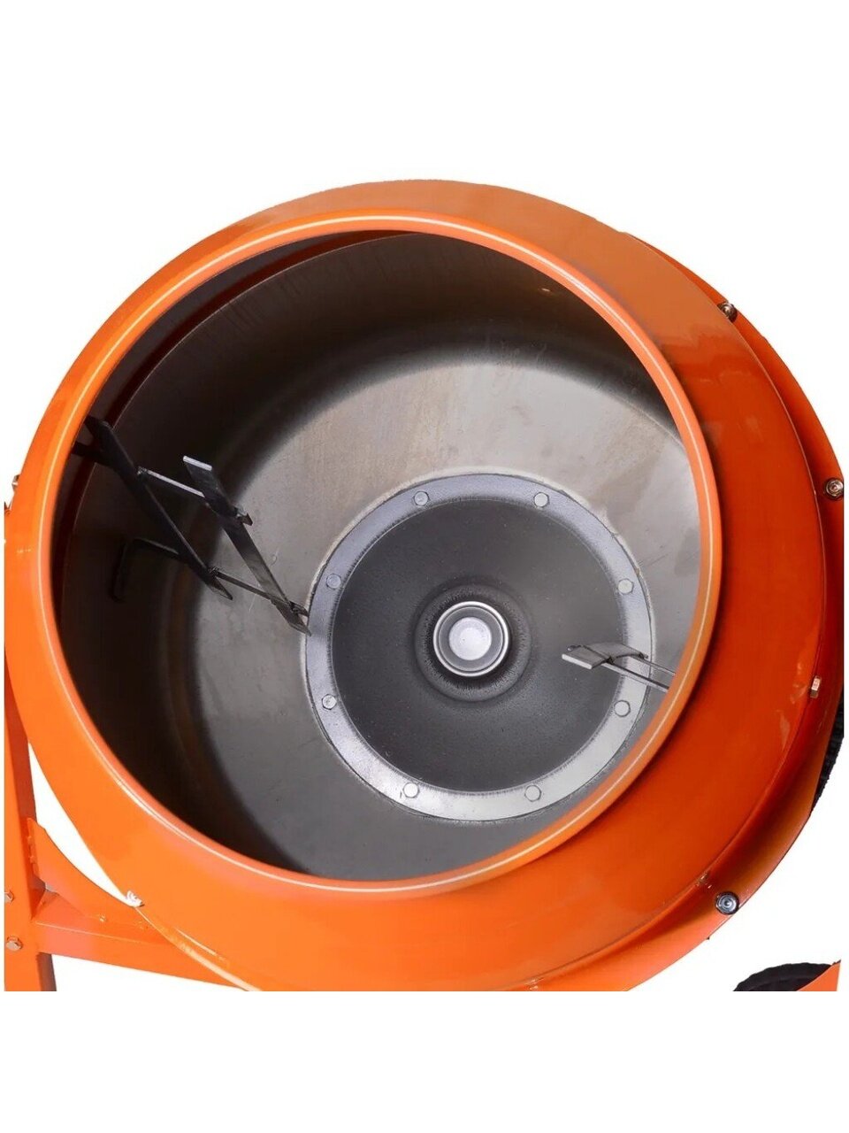 Прочная рабочая емкость из стали не менее 2 мм, а также обслуживаемый опорный подшипник, увеличивают срок службы бетономешалки.