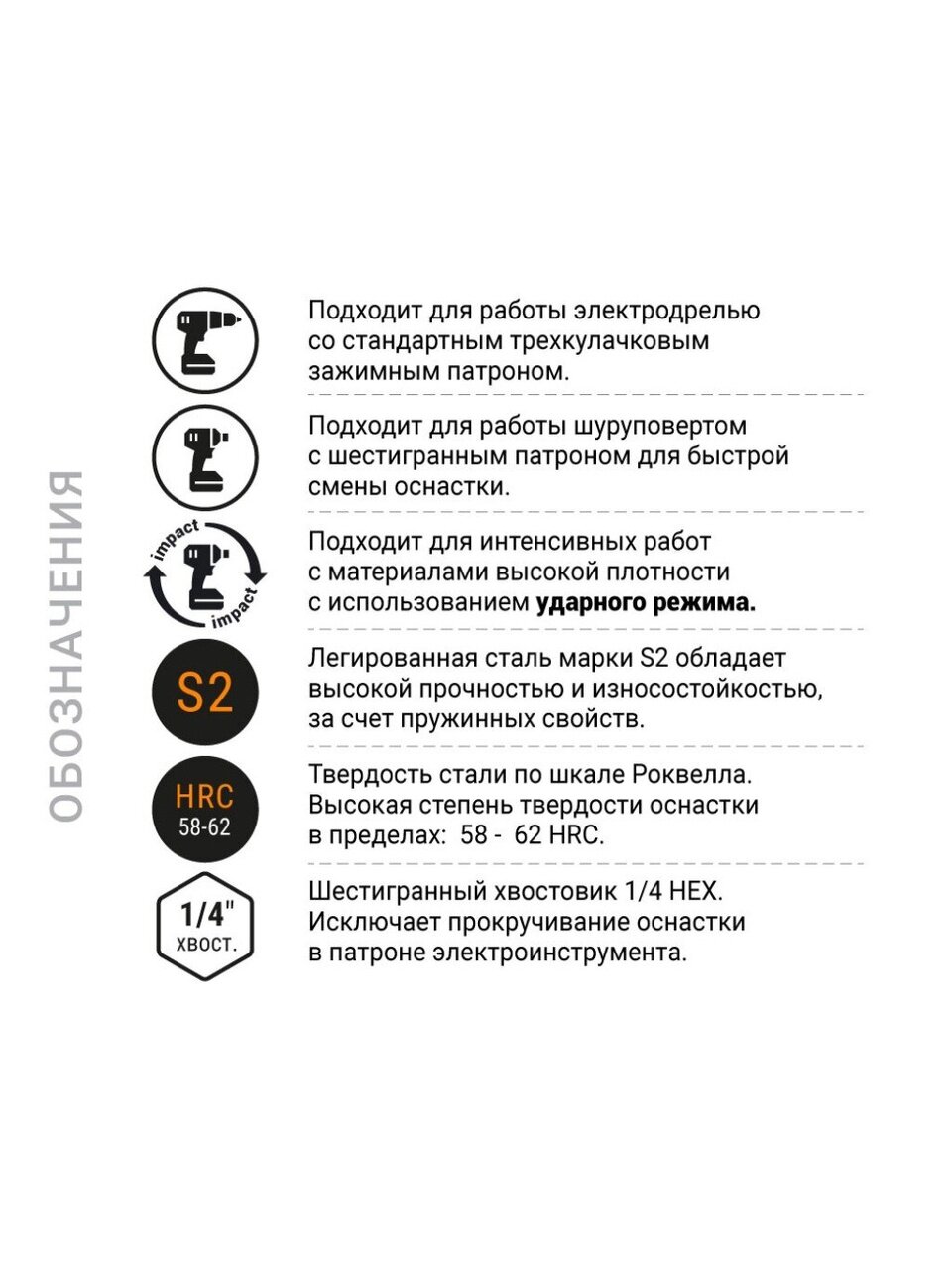 - Биты имеют зону Torsion, позволяющую выдерживать большие нагрузки при кручении.