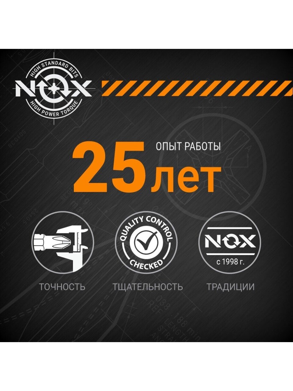 Бита с 6-гранной торцевой головкой 6х48 мм Nox 556001 используется совместно с шуруповертами для ввинчивания кровельных саморезов и закручивания гаек. Специальная форма привода предотвращает сколы краски на шляпке шурупа, а магнит надежно удерживает крепеж.