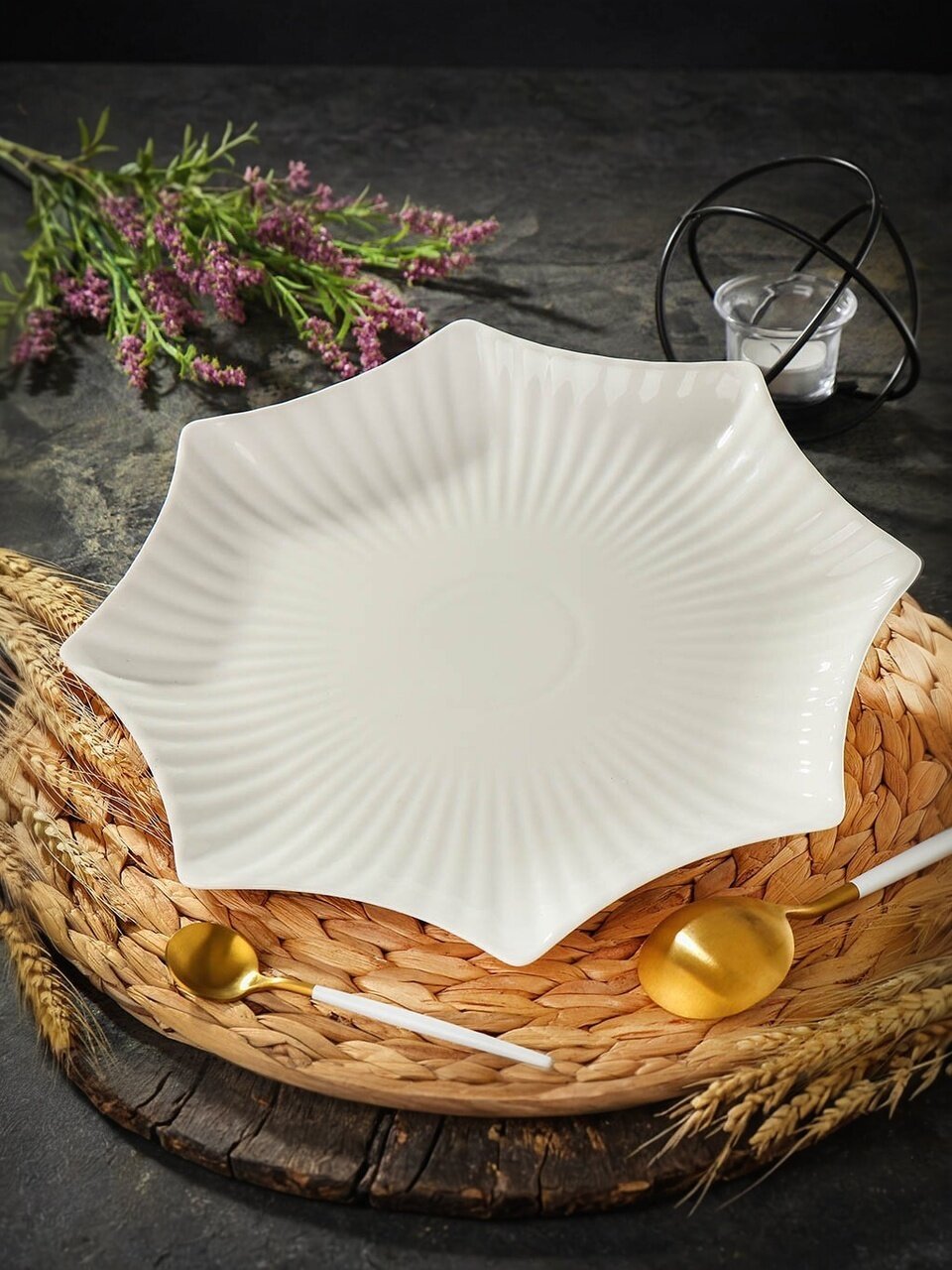 Фигурное керамическое блюдо Daniks Грейс диаметром 30 см — это универсальный выбор для сервировки стола. Белая однотонная поверхность с рельефом гармонично впишется в любой интерьер, а бортики обеспечивают удобство подачи закусок, сыра, фруктов. Часто спрашивают: «Как выбрать блюдо для нарезки?» — обратите внимание на форму и материал. Керамика безопасна, не впитывает запахи, а фигурная форма делает подачу эффектной.