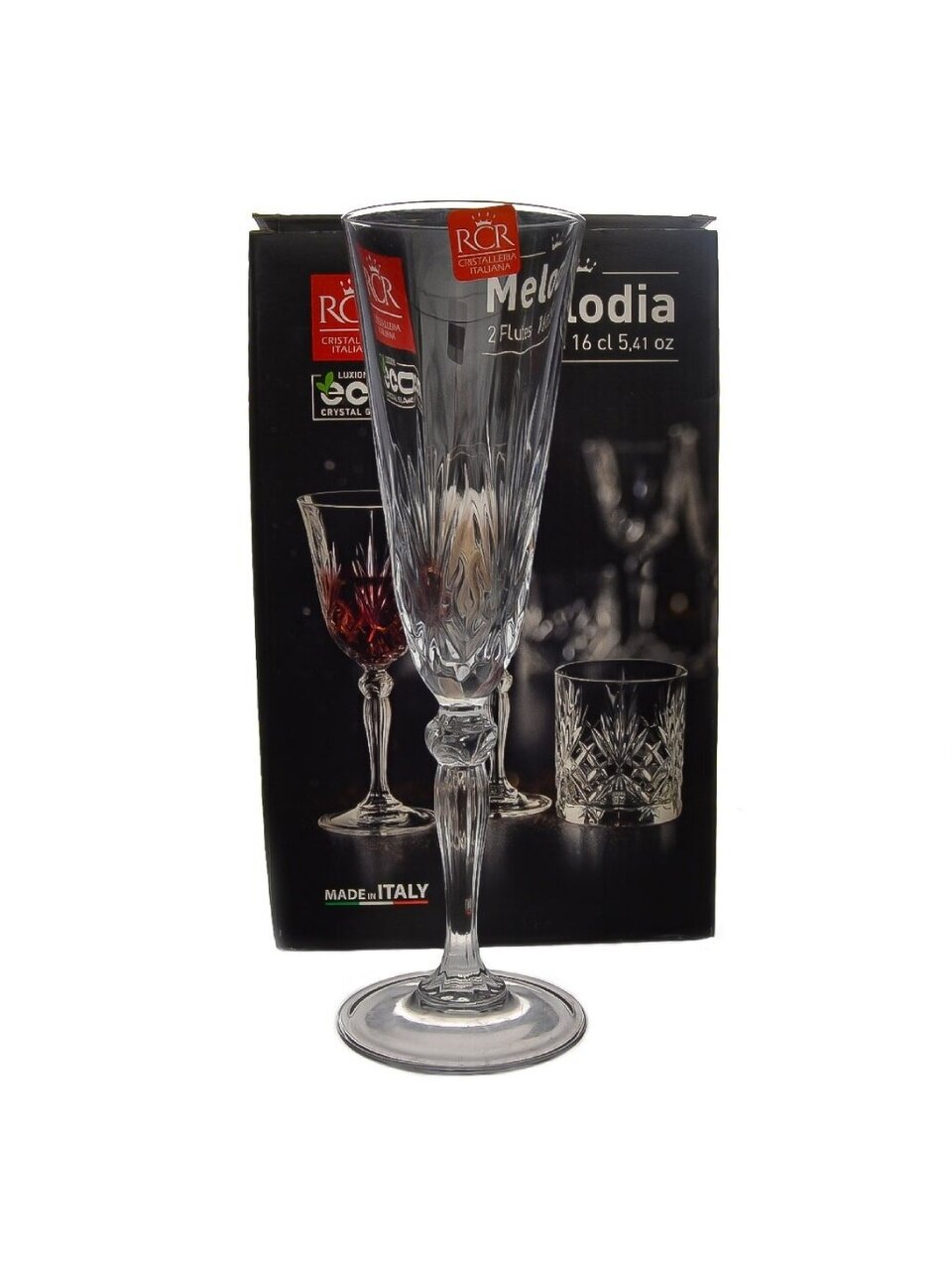 Бокалы для шампанского RCR Melodia 160 мл — премиальный набор из хрустального стекла для стильной сервировки и идеального подарка на праздник