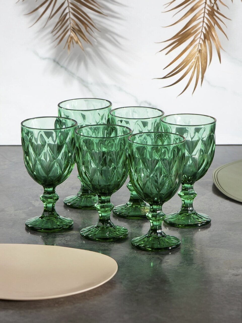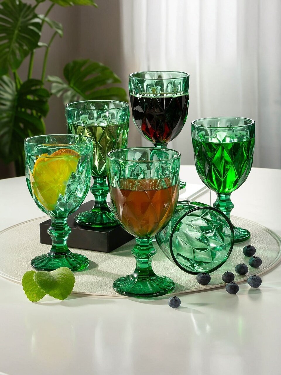 Бокалы для вина Daniks «Малахит», 250 мл, 6 шт — стильный набор из рельефного зелёного стекла для подарка и уютных вечеров. Безопасно, эстетично, выгодно!