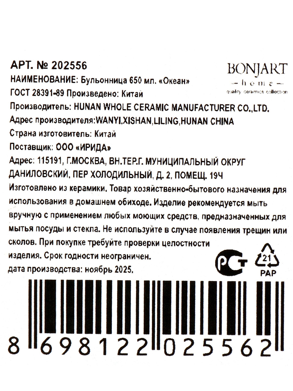 Бульонница из керамики объёмом 650 мл — это оптимальный выбор для тех, кто ценит комфорт и эстетику в быту. Керамическая посуда хорошо держит тепло, не впитывает запахи и проста в уходе. Благодаря ручке пользоваться бульонницей удобно даже детям и пожилым людям. Если вы ищете, какую бульонницу выбрать для дома или дачи, обратите внимание на этот вариант: он сочетает вместимость, прочность и привлекательный внешний вид.