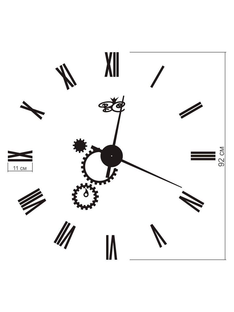 Большие настенные бескаркасные часы - красивый современный настенный декор с функцией хронометра. Тонкие изящные римские цифры в сочетании со стилизованными шестернями часового механизма призваны передать историческую ценность изобретения классических механических часов.