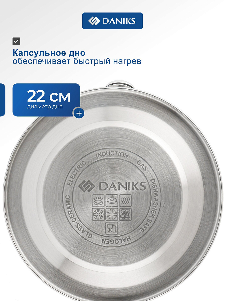 Чайник Daniks GS-04611 — это функциональный чайник из нержавейки с капсульным дном, который быстро нагревается и подходит для всех типов плит, включая индукционные. Сатинированная поверхность устойчива к царапинам и легко очищается. Объем 3 л позволяет закипятить воду на всю семью или компанию гостей, а свисток предупредит о закипании и защитит от выкипания воды.