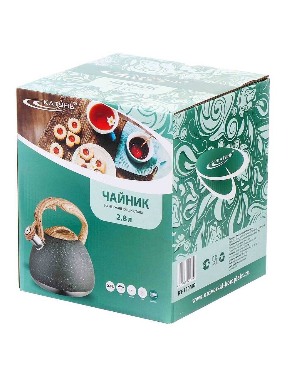 Вы можете приобрести «Чайник нержавеющая сталь, 2.8 л, со свистком, ручка soft touch, Катунь, Гранит, индукция, серый, КТ-150MG» и другие товары в нашем интернет-магазине в Россоши по низким ценам и с бесплатным самовывозом.