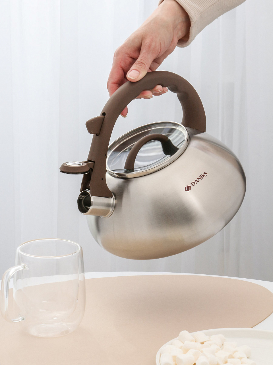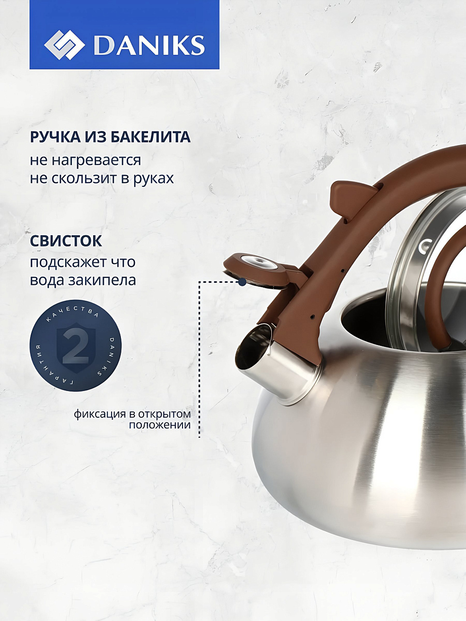 Вы можете приобрести «Чайник нержавеющая сталь, 3 л, со свистком, матовый, Daniks, Emerald, индукция, коричневый, DSC-8804» и другие товары в нашем интернет-магазине в Санкт-Петербургe по низким ценам и с бесплатным самовывозом.