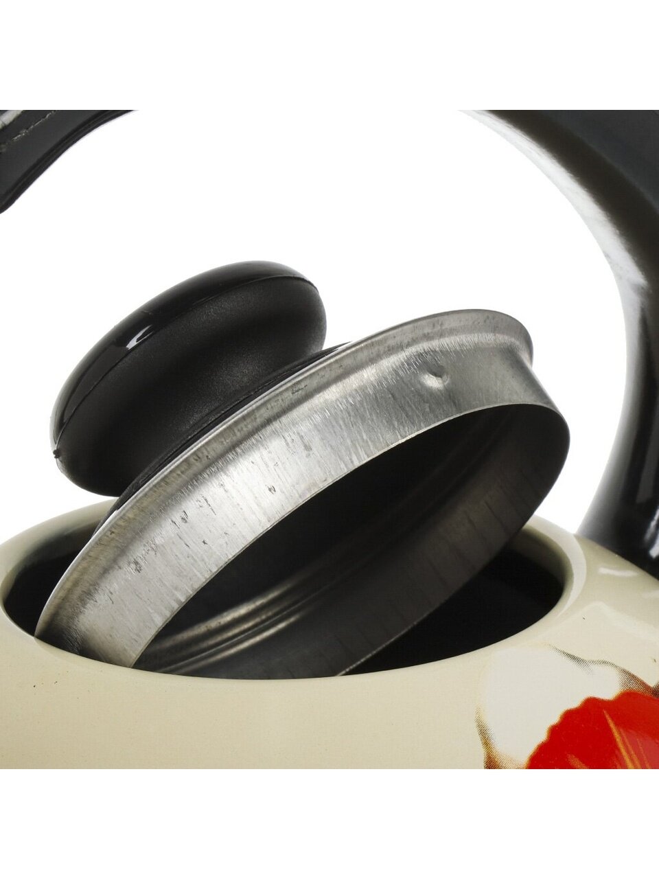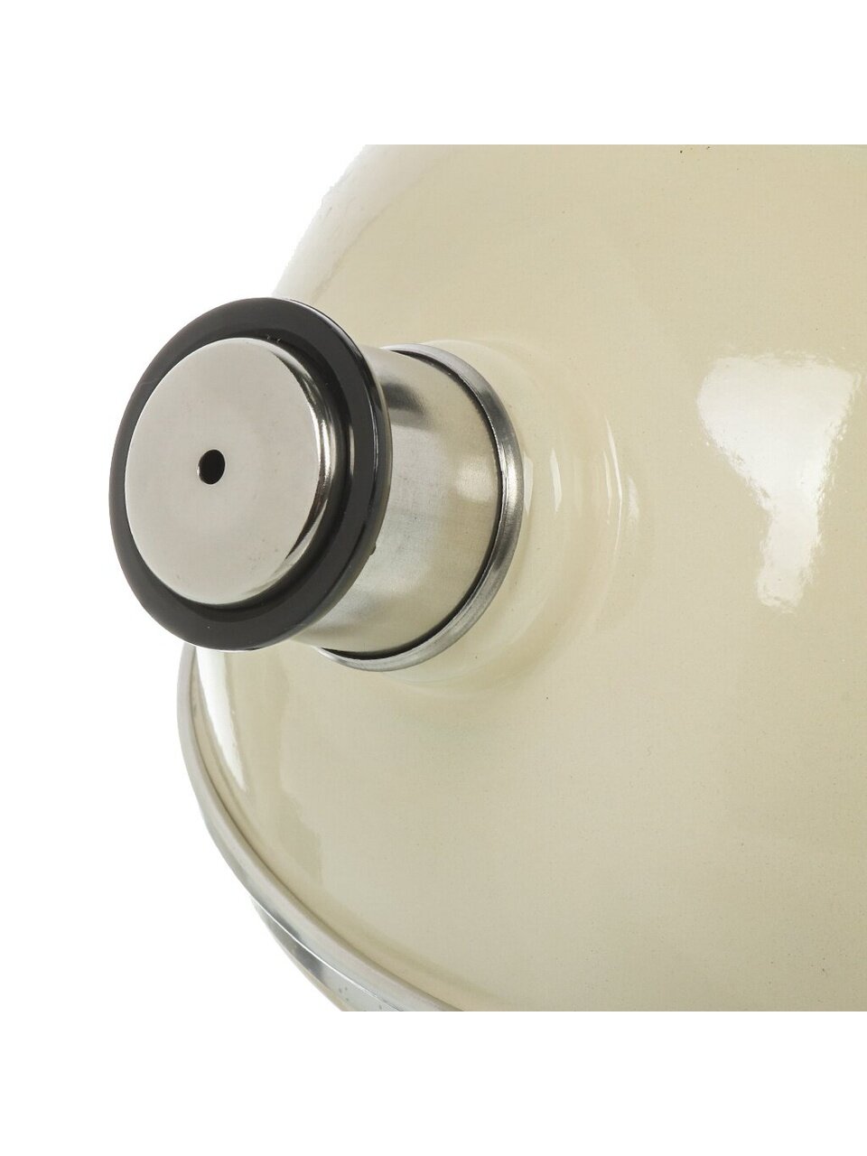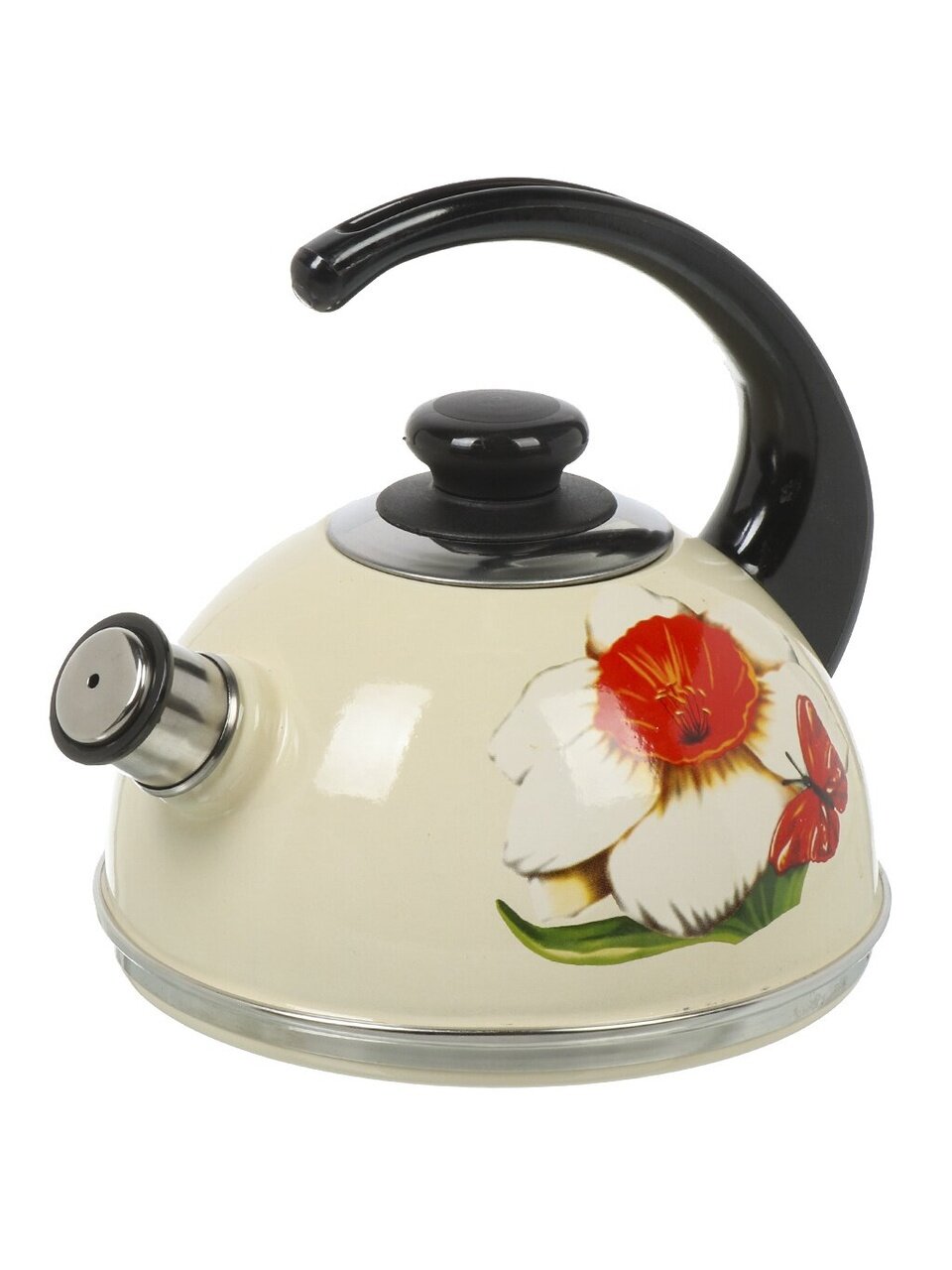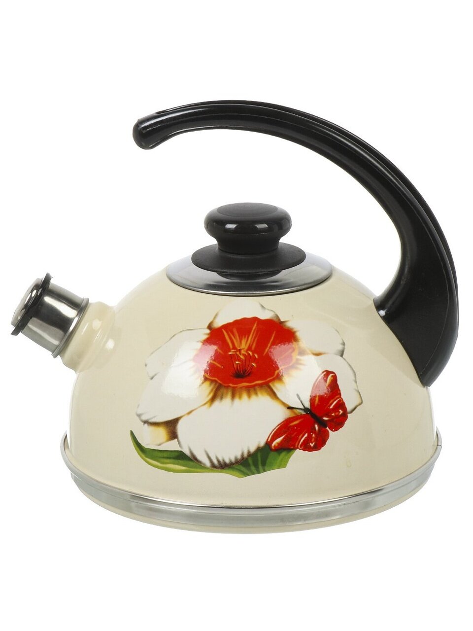 Чайник объемом 2.5 литра, изготовленный из прочной стали с эмалированным покрытием, обеспечивает длительную службу и легкость в уходе. Его консольная термоизолированная ручка гарантирует безопасность и удобство при использовании. Встроенный свисток своевременно оповестит о закипании воды, что добавляет дополнительный комфорт в повседневные ритуалы заваривания чая или кофе.