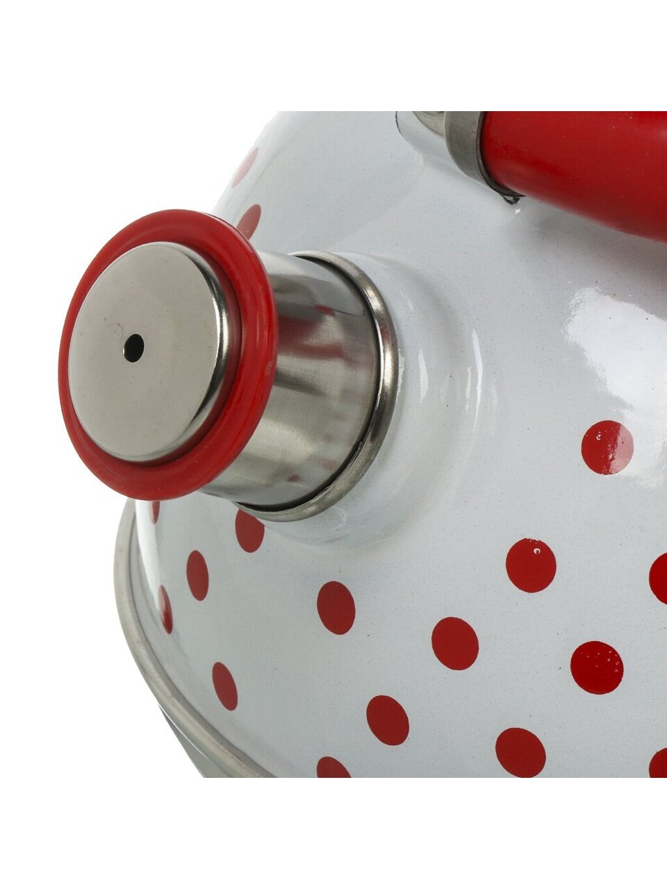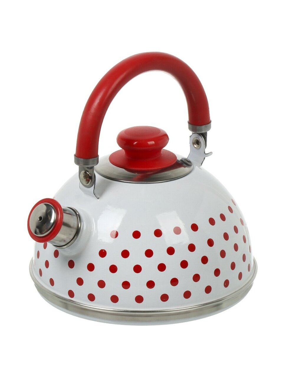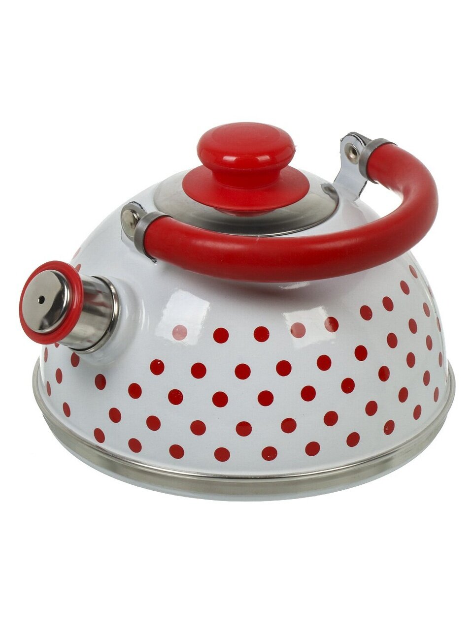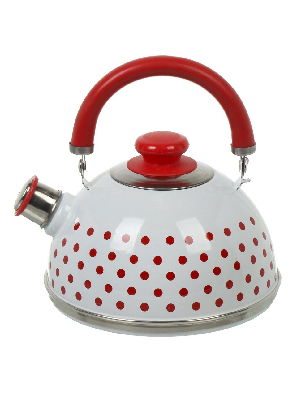 Вы можете приобрести «Чайник сталь, эмалированное покрытие, 2.5 л, со свистком, подвижная ручка, Рубин, Красные горохи, белый, TMM04/25/03/30/H13» и другие товары в нашем интернет-магазине в Курске по низким ценам и с бесплатным самовывозом.
