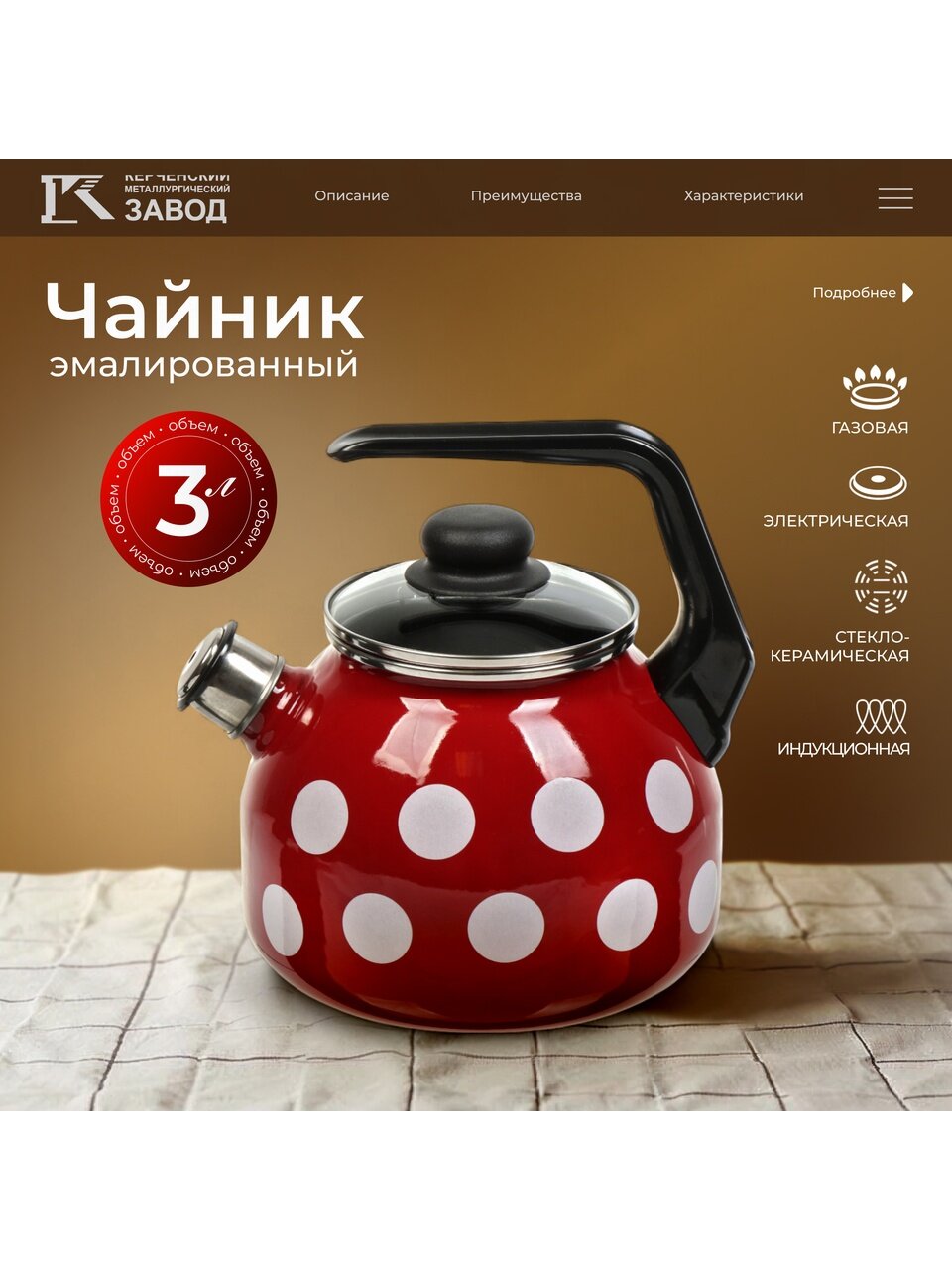 Вы можете приобрести «Чайник сталь, эмалированное покрытие, 3 л, со свистком, с пластиковой кнопкой, Сибирские товары, Вишневый белый горох, индукция, С2717.3ЯР*106» и другие товары в нашем интернет-магазине в Борисоглебске по низким ценам и с бесплатным самовывозом.