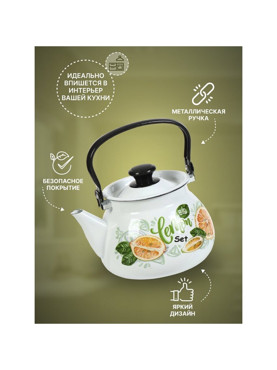 Вы можете приобрести «Чайник сталь, эмалированное покрытие, 3 л, ручка металлическая, Керченский металлургический завод, Лимонный сет, 42104-122/6-У» и другие товары в нашем интернет-магазине в Россоши по низким ценам и с бесплатным самовывозом.