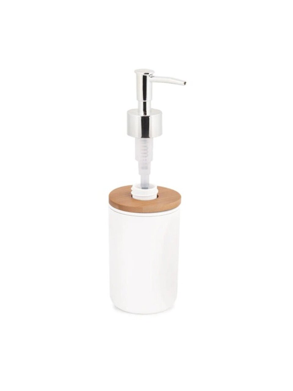 Дозатор для жидкого мыла имеет универсальное применение. Такой аксессуар для ванной можно использовать не только для жидкого мыла, но и для дозирования кремов, шампуней, моющих средств. Дозатор позволит более экономно использовать средства. Дозатор для жидкого мыла изготовлен из качественного пластика, а вставка произведена из натурального растительного материала - бамбук. Пластик не подвержен внешним воздействиям, легко моется и не желтеет со временем. Вставка из бамбука имеет специальную обработку, которая защитит ее от размокания и плесени. Дозатор имеет оригинальный дизайн за счет сочетания двух разных материалов. Такое изделие может стать интерьерным решением для создания уюта в ванной комнате.