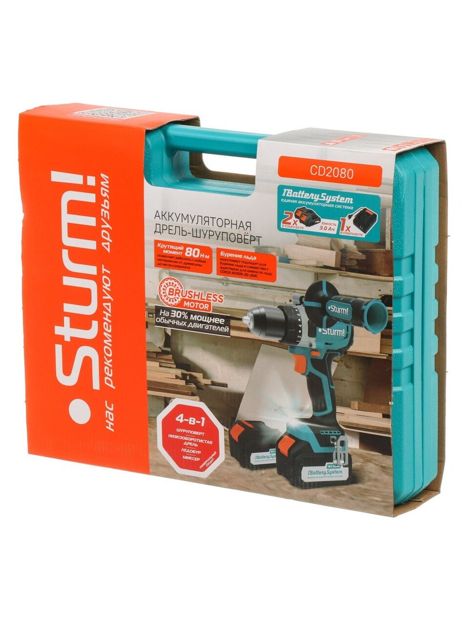 Вы можете приобрести «Дрель аккумуляторная, Sturm, CD2080, бесщеточная, 18 В, 1BatterySystem, 4в1, дополнительная рукоятка, кейс» и другие товары в нашем интернет-магазине в Иваново по низким ценам и с бесплатным самовывозом.