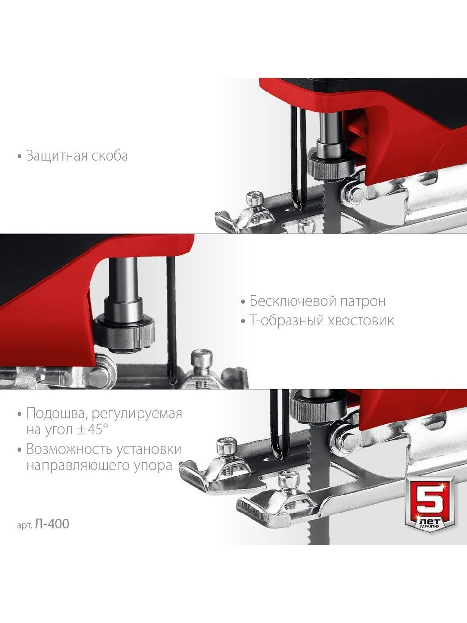 - Быстрозажимной патрон значительно упрощает замену пилок и экономит время.