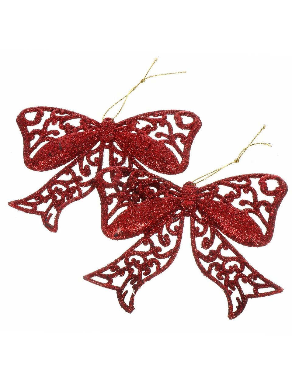 В комплекте 2 банта, каждый размером 11х9.5 см. Это средние по размеру украшения, которые хорошо смотрятся как на большой, так и на компактной елке.