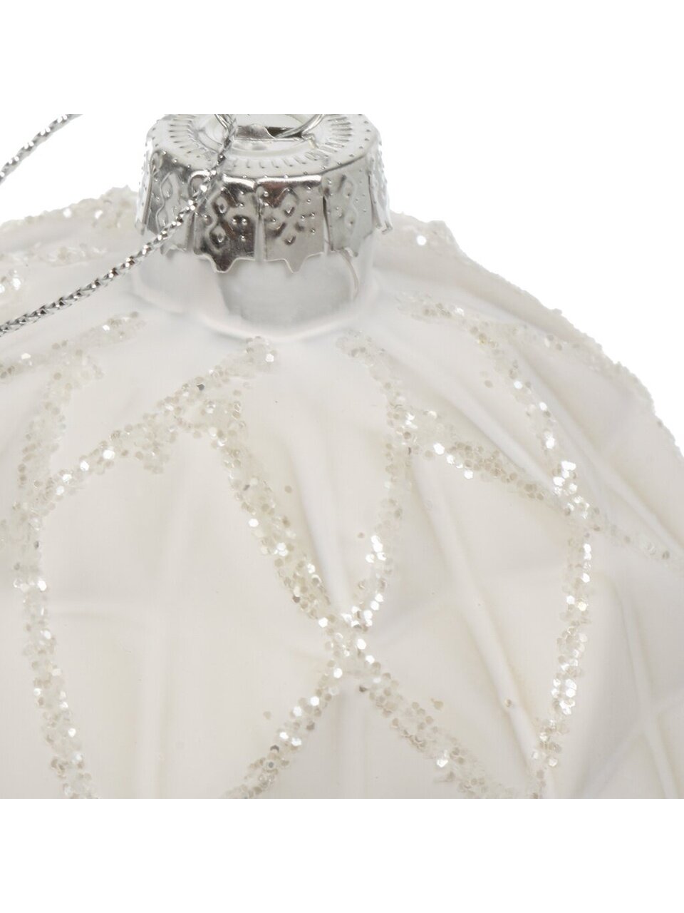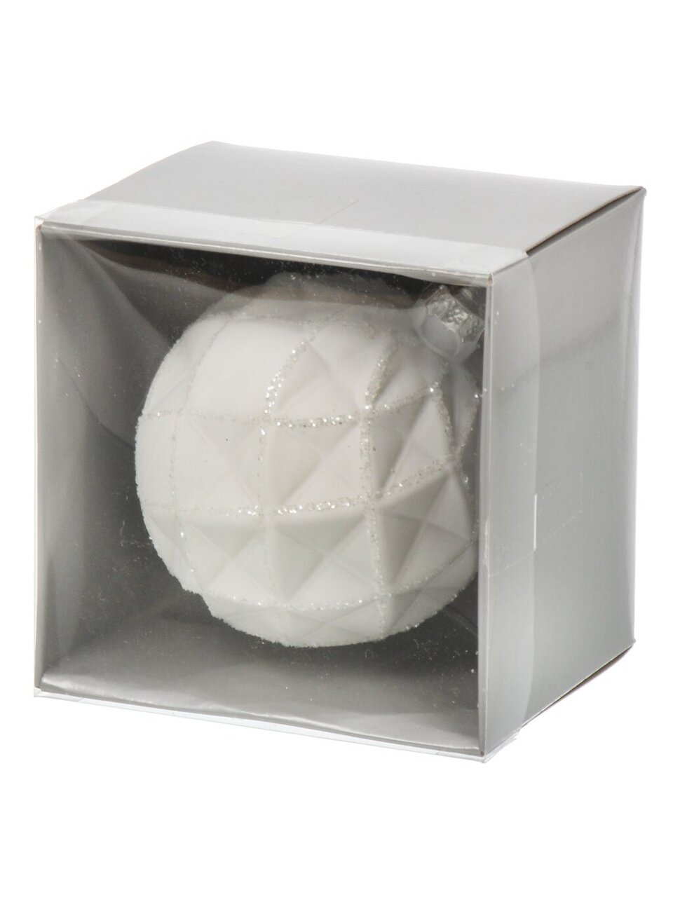 Елочный шар Геометрия 8 см, белый, стекло — стильный акцент для новогоднего декора. Подходит для подарка, украшения дома и офиса. Прочный, безопасный, с блестящим покрытием.