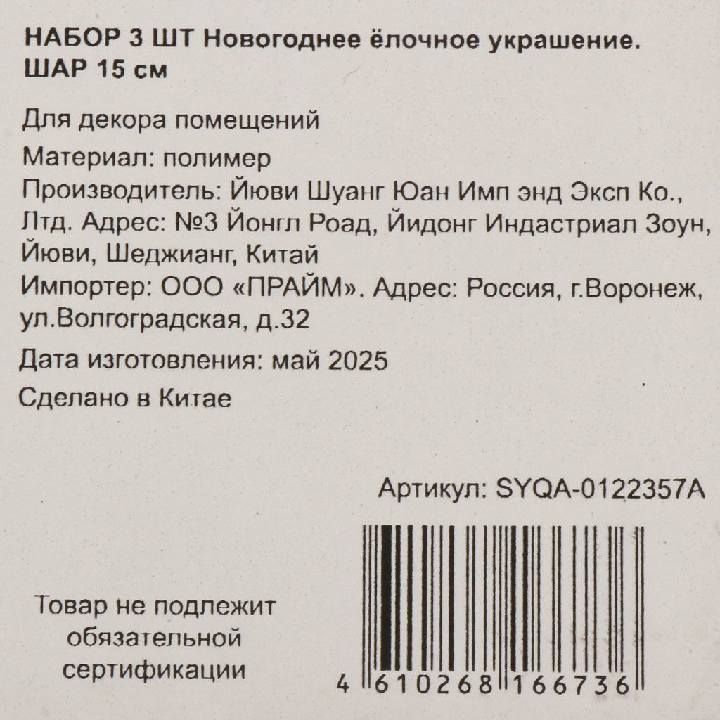 Покупатели часто спрашивают: «Как выбрать елочные шары для улицы?» — этот набор идеально подходит: пластик не боится влаги и перепадов температуры, а размер 15 см хорошо заметен даже на больших елках. В отличие от стеклянных аналогов, пластиковые украшения служат дольше и не требуют особых условий хранения. Если вы ищете, что лучше выбрать для дачи или для подарка, обратите внимание на этот комплект: шары поставляются в коробке, что удобно для хранения и транспортировки.