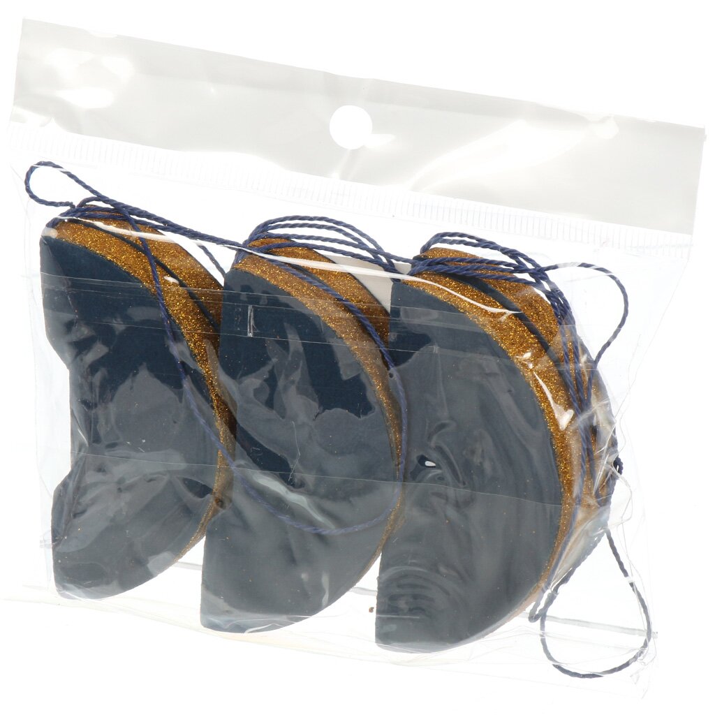 В комплекте 6 средних шаров синего цвета с блестками, каждый на удобной подвеске для быстрой установки на елку.