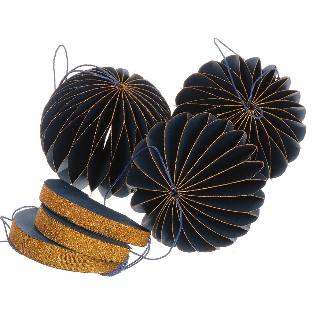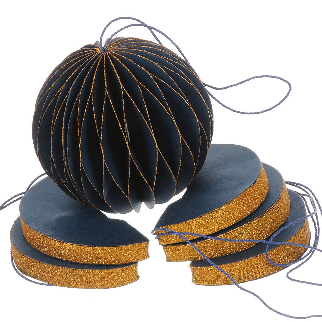 Эффектные синие шары с блеском из бумаги — стильный набор из 6 небьющихся украшений для безопасного и недорогого декора елки дома или на даче.