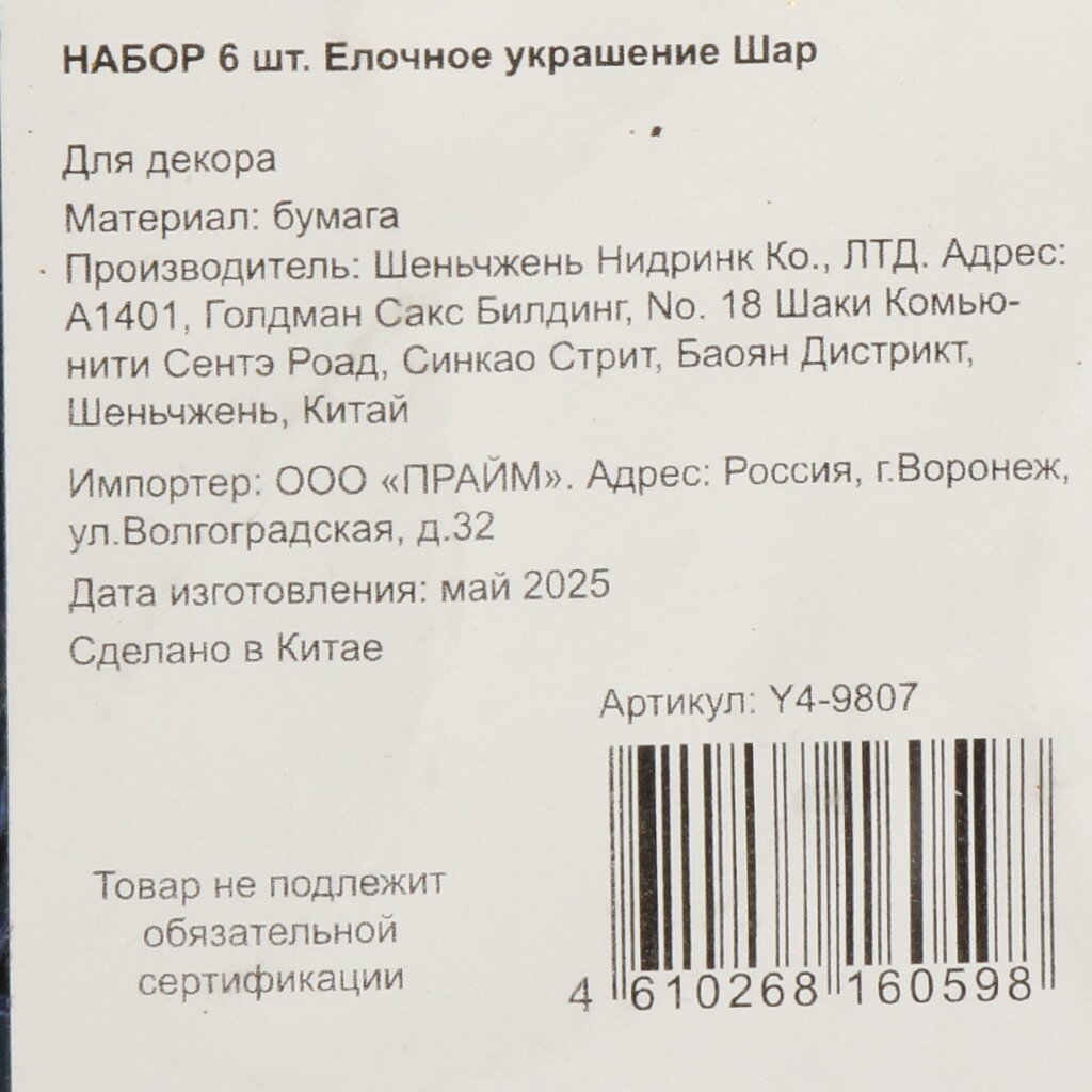 Вы можете приобрести «Елочное украшение Шар, 6 шт, синий с блеском, бумага, Y4-9807» и другие товары в нашем интернет-магазине в Россоши по низким ценам и с бесплатным самовывозом.