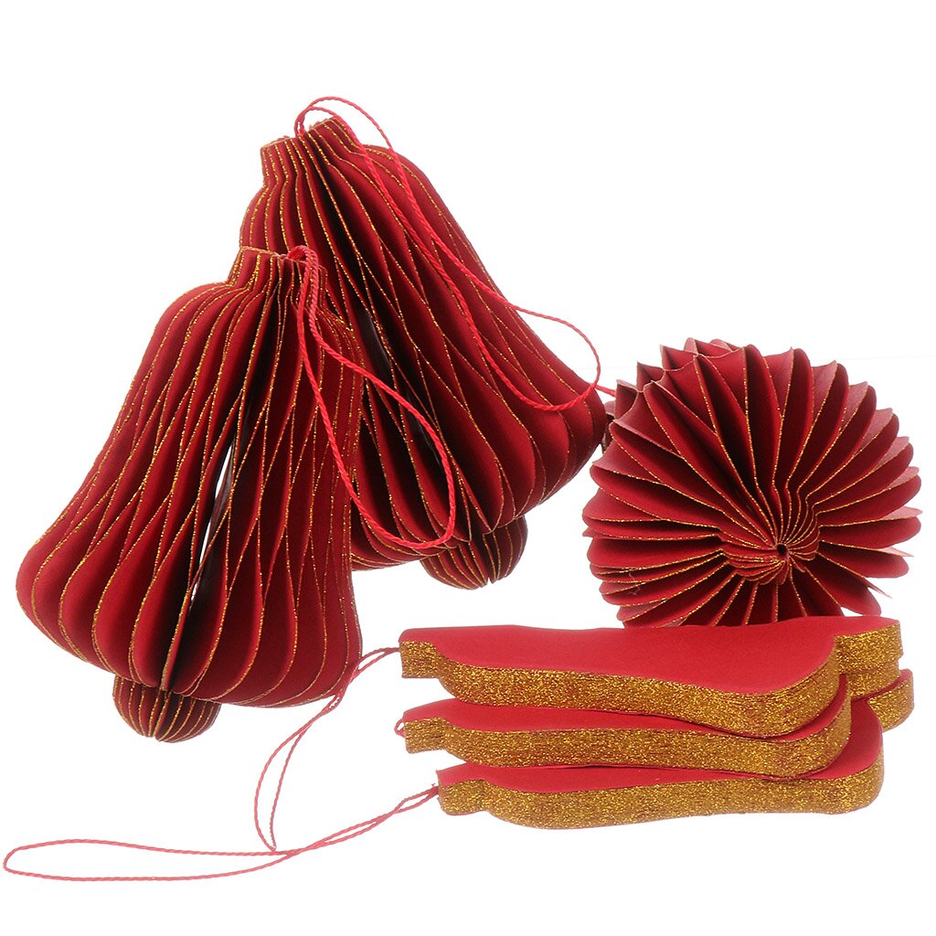 Яркий набор из 6 бумажных колокольчиков с красным блеском — стильное и безопасное елочное украшение для дома, дачи и подарков. Не бьётся, не выгорает, подходит для детей!