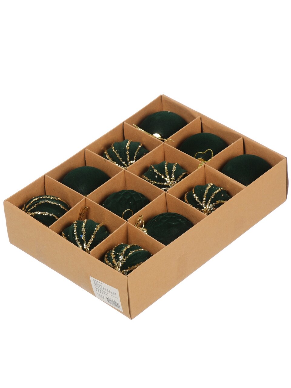 Эффектный набор шаров 12 шт, 6 см, флок, красный и зеленый — стильное решение для украшения дома, офиса или подарка. Безопасные материалы, трендовые цвета, универсальный размер.