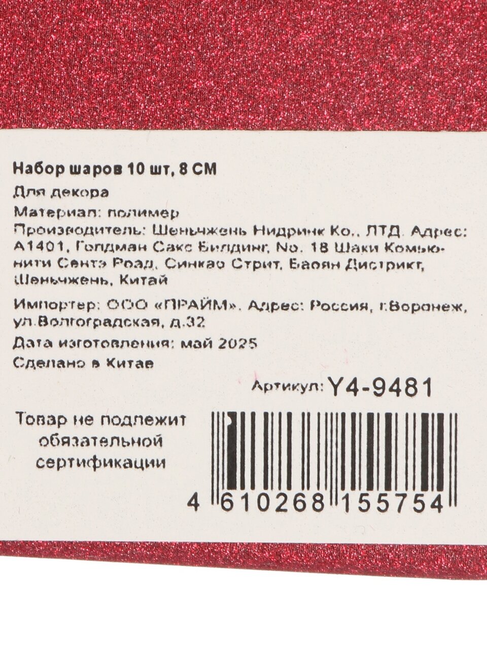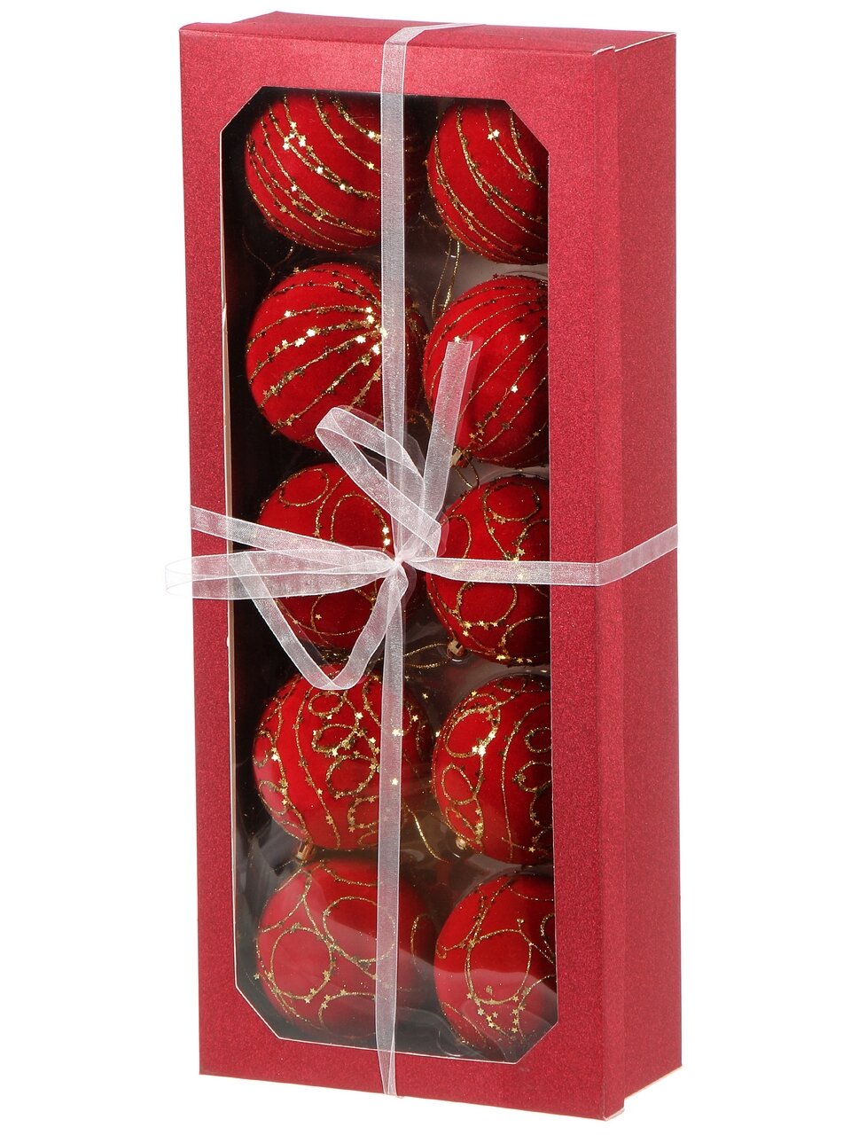 Набор шаров 10 шт, 8 см, флок, красный — эффектное украшение для ёлки, декора дома или стильного подарка. Безопасный материал, насыщенный цвет, выгодная цена.