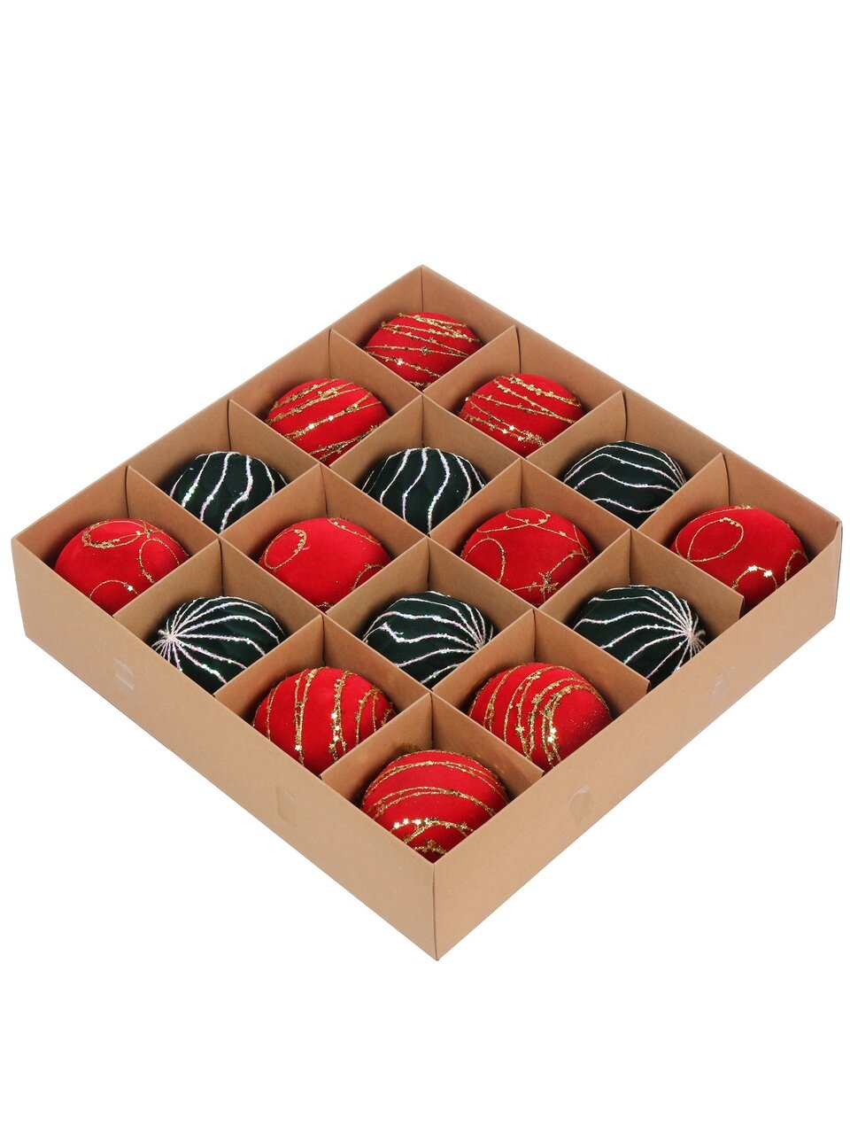 Набор шаров 16 шт, 8 см, флок, красный, зеленый Y4-9482 — эффектное украшение для ёлки и интерьера: яркие цвета, приятная текстура, выгодная цена, готовое решение для праздника.