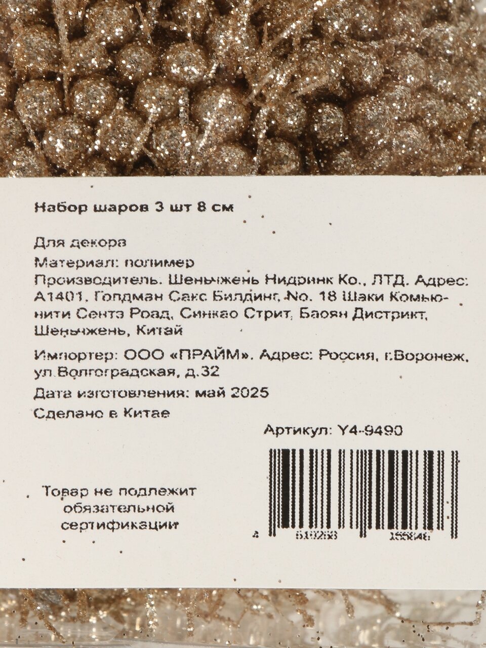 Оформите заказ на набор шаров 3 шт 8 см, шампань, глиттер Y4-9490 — получите стильные украшения по выгодной цене, быструю доставку и гарантию качества от проверенного поставщика.