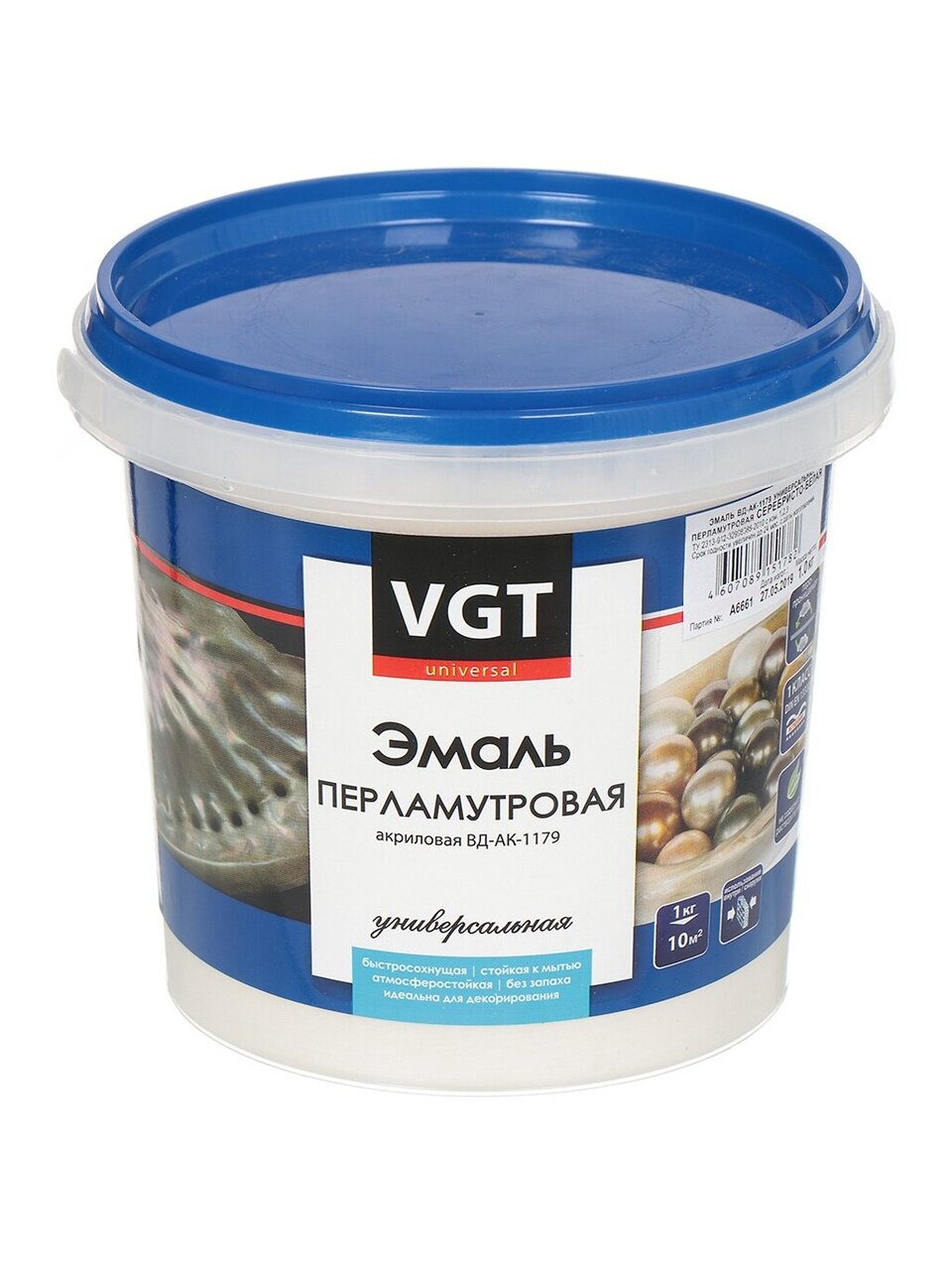 Вы можете приобрести «Эмаль VGT, ВД-АК-1179, универсальная, акриловая, глянцевая, серебряно-белый, 1 кг» и другие товары в нашем интернет-магазине в Серпухове по низким ценам и с бесплатным самовывозом.