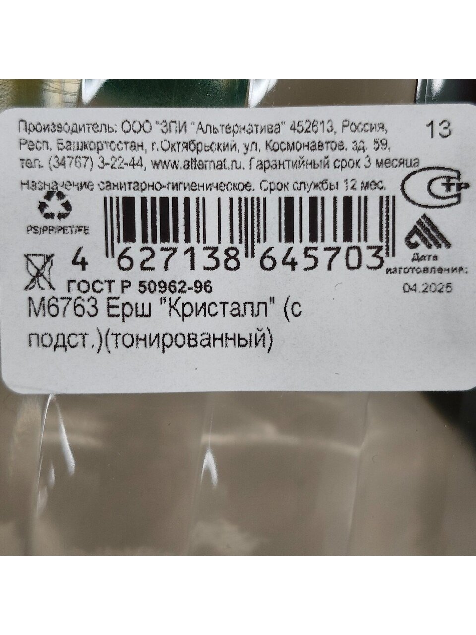 Вы можете приобрести «Ерш для туалета Альтернатива, Кристалл, напольный, с подставкой, пластик, М6763» и другие товары в нашем интернет-магазине в Казани по низким ценам и с бесплатным самовывозом.