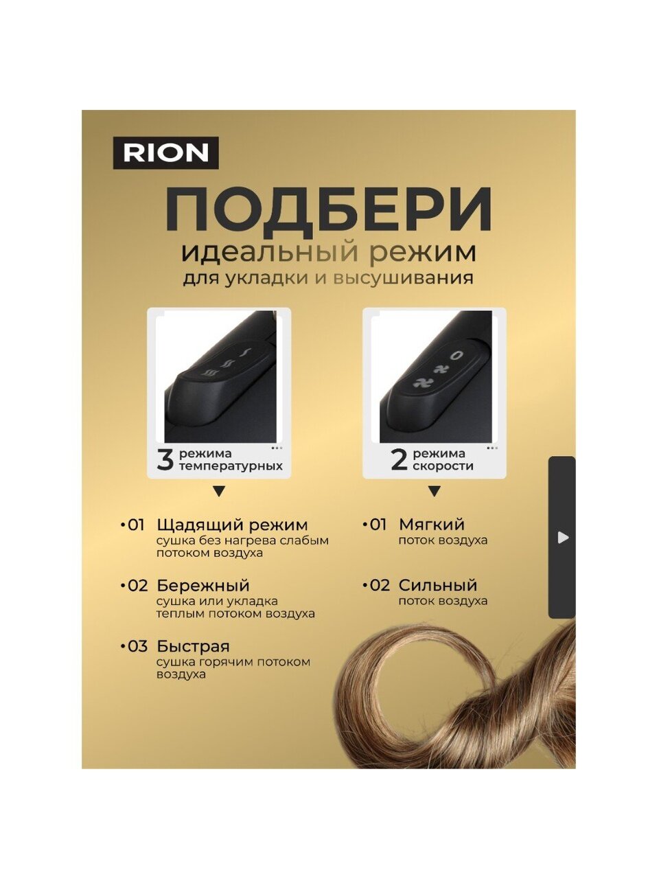 Фен Rion TC-3561 станет вашим надежным спутником в создании стильных причесок. Выгода от покупки этого устройства заключается в возможности быстро и качественно высушивать волосы, сохраняя их здоровье и красоту. Забудьте о долгих часах, проведенных в салонах, и наслаждайтесь профессиональными результатами дома. Этот фен — ваш ключ к идеальному образу каждый день.