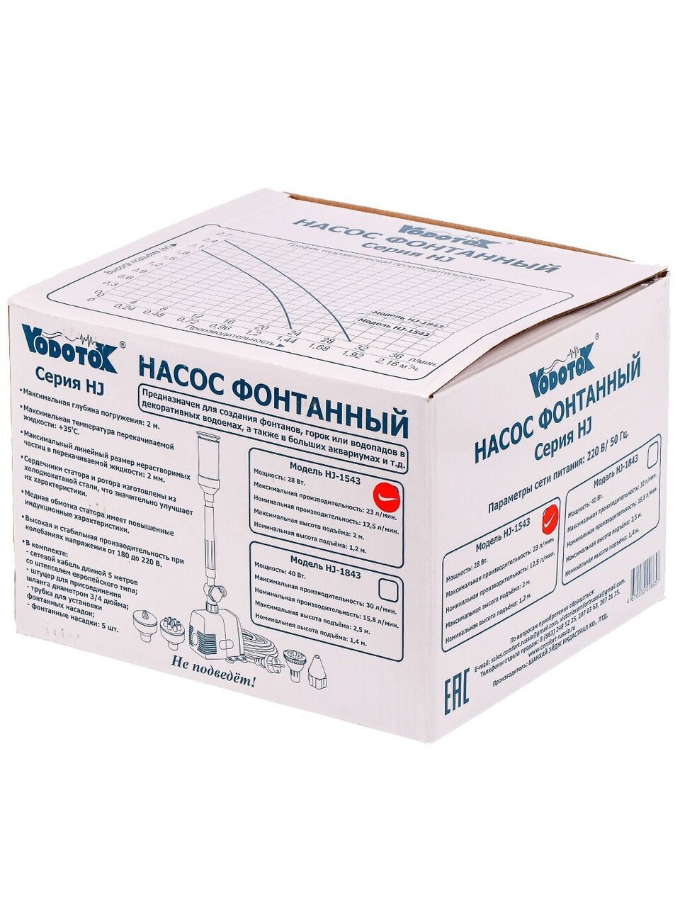 Вы можете приобрести «Насос фонтанный, Vodotok, 1 '', 5 м, 28 Вт, глубина погружения 5 м, максимальный напор 2 м, 1.48 м³/ч, HJ-1543» и другие товары в нашем интернет-магазине в Воронеже по низким ценам и с бесплатным самовывозом.