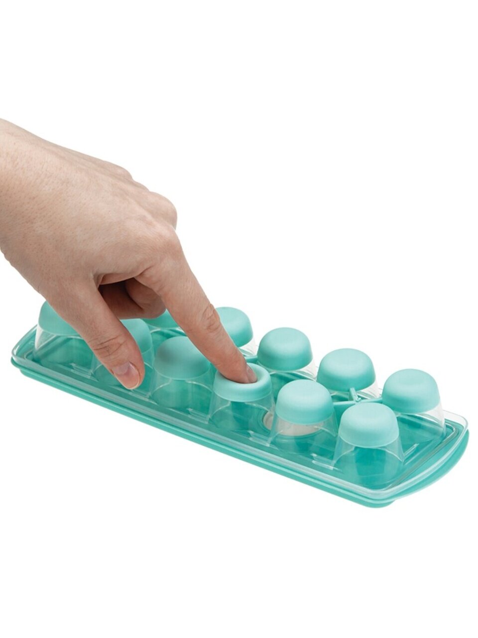 Форма для льда с крышкой и клапаном имеет эластичные вставки по дну формы, для удобного и комфортного извлечения льда. Благодаря этому Вы сможете одним движением извлекать замороженный лёд из формы.