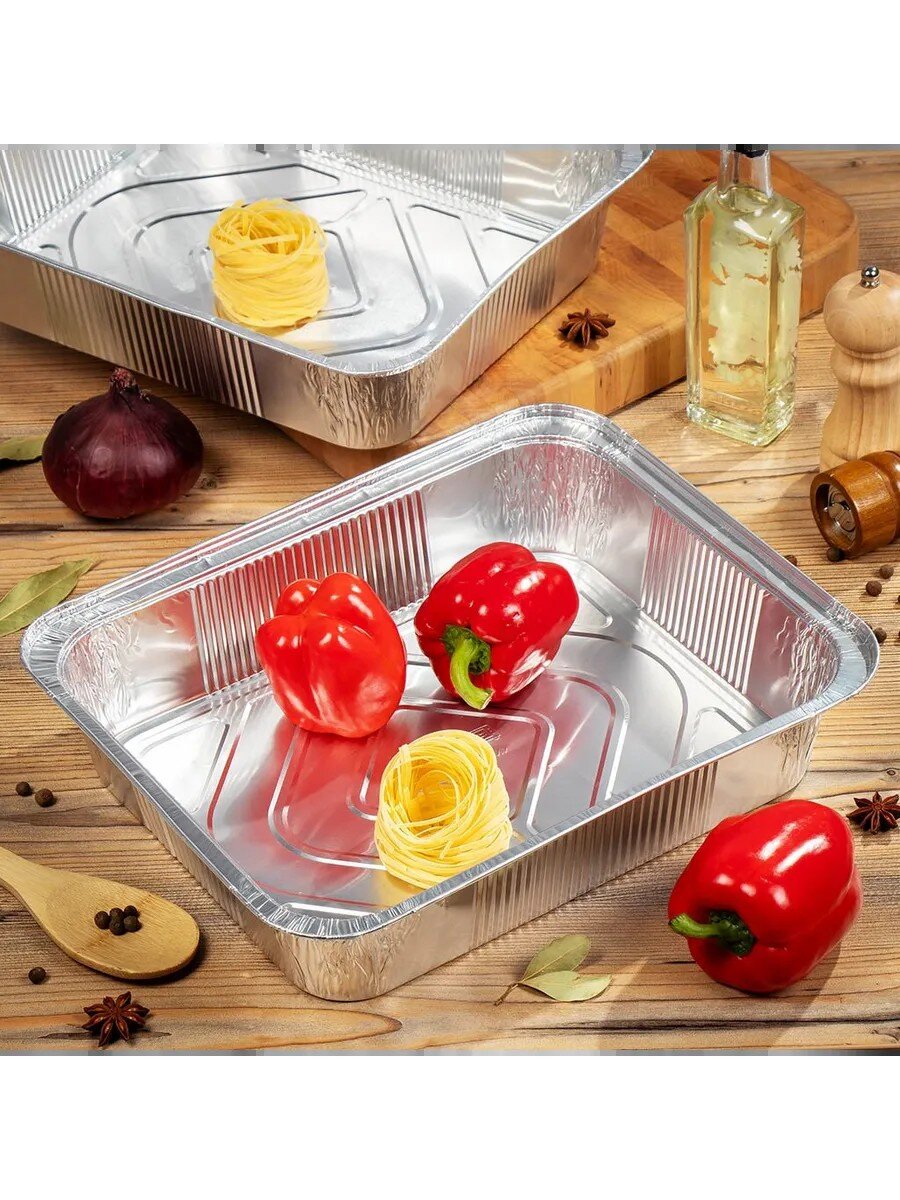 Часто спрашивают: «Как использовать алюминиевую форму для курицы или рыбы?», «Подходит ли для духовки и дачи?» — да, эти формы специально созданы для запекания в духовке, а их одноразовый формат избавляет от необходимости мыть посуду после застолий. В отличие от многоразовых жаропрочных форм, алюминиевые емкости легче и не требуют ухода, что особенно удобно для дачи, пикника или праздника. Не подходят для СВЧ и посудомоечной машины.