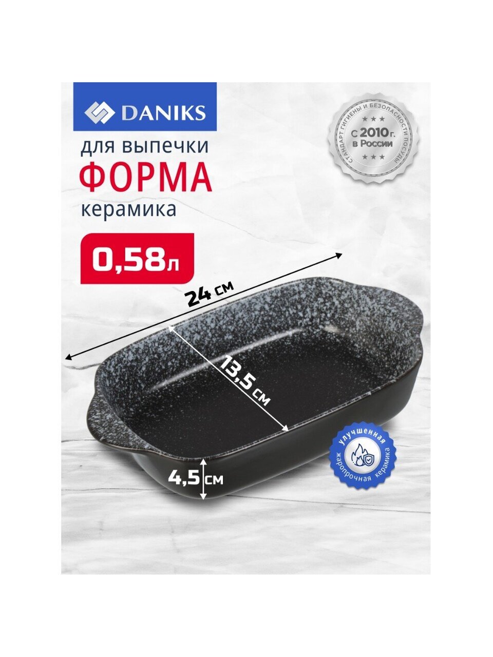 Форма для запекания Daniks Полночь 24×13,5×4,5 см: стильная керамика для духовки и СВЧ — идеальный выбор для мяса, пирога и универсального использования.