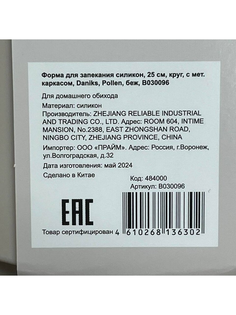 Вы можете приобрести «Форма для запекания силикон, 25 см, круглая, с металлическим каркасом, бежевая, Daniks, Pollen, B030096» и другие товары в нашем интернет-магазине в Краснодаре по низким ценам и с бесплатным самовывозом.