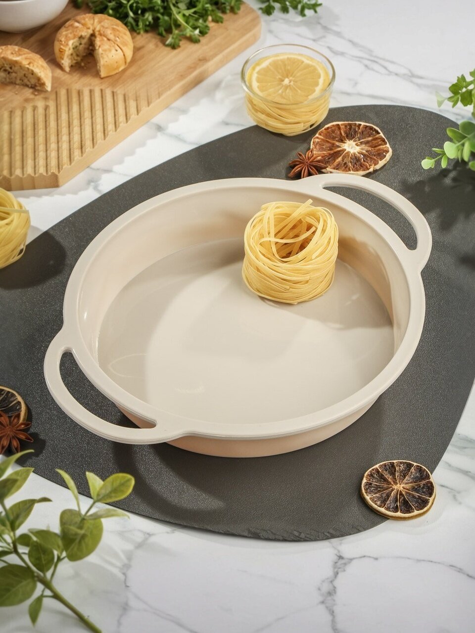 Если вы ищете, чем отличается силиконовая форма от металлической, обратите внимание: силикон не ржавеет, не впитывает запахи и не требует дополнительной смазки. Металлический каркас внутри предотвращает провисание, что особенно важно для больших форм 25 см. Можно ли использовать в СВЧ? Нет, но для духовки — это оптимальный вариант. Подходит ли для подарка? Да, благодаря лаконичному бежевому цвету и универсальному размеру.
