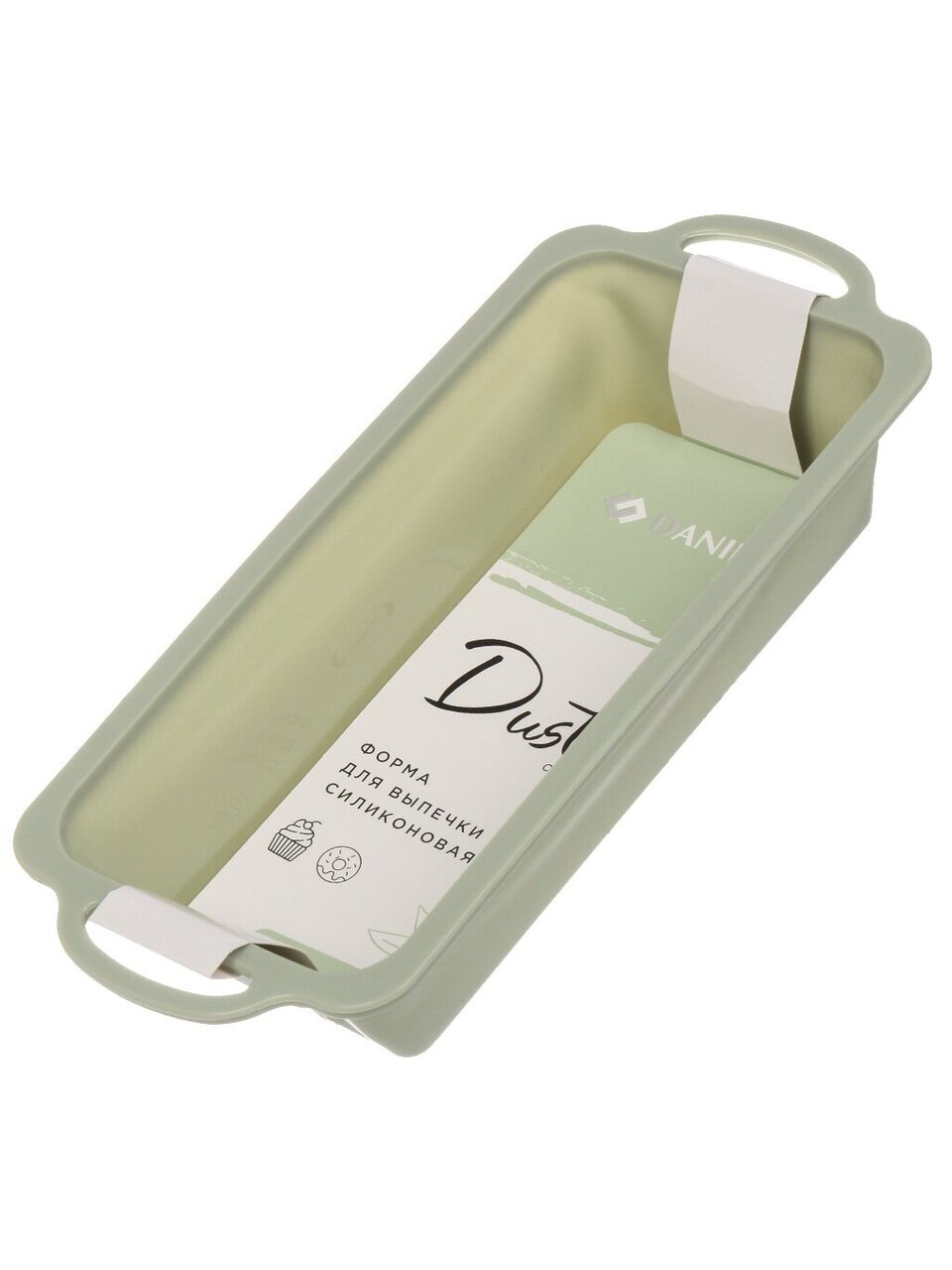 Силиконовая форма для запекания Daniks Dust 31.5х14.6 см — универсальное решение для хлеба, паштета и пирога. Прочный каркас, стильный фисташковый цвет, легко мыть.