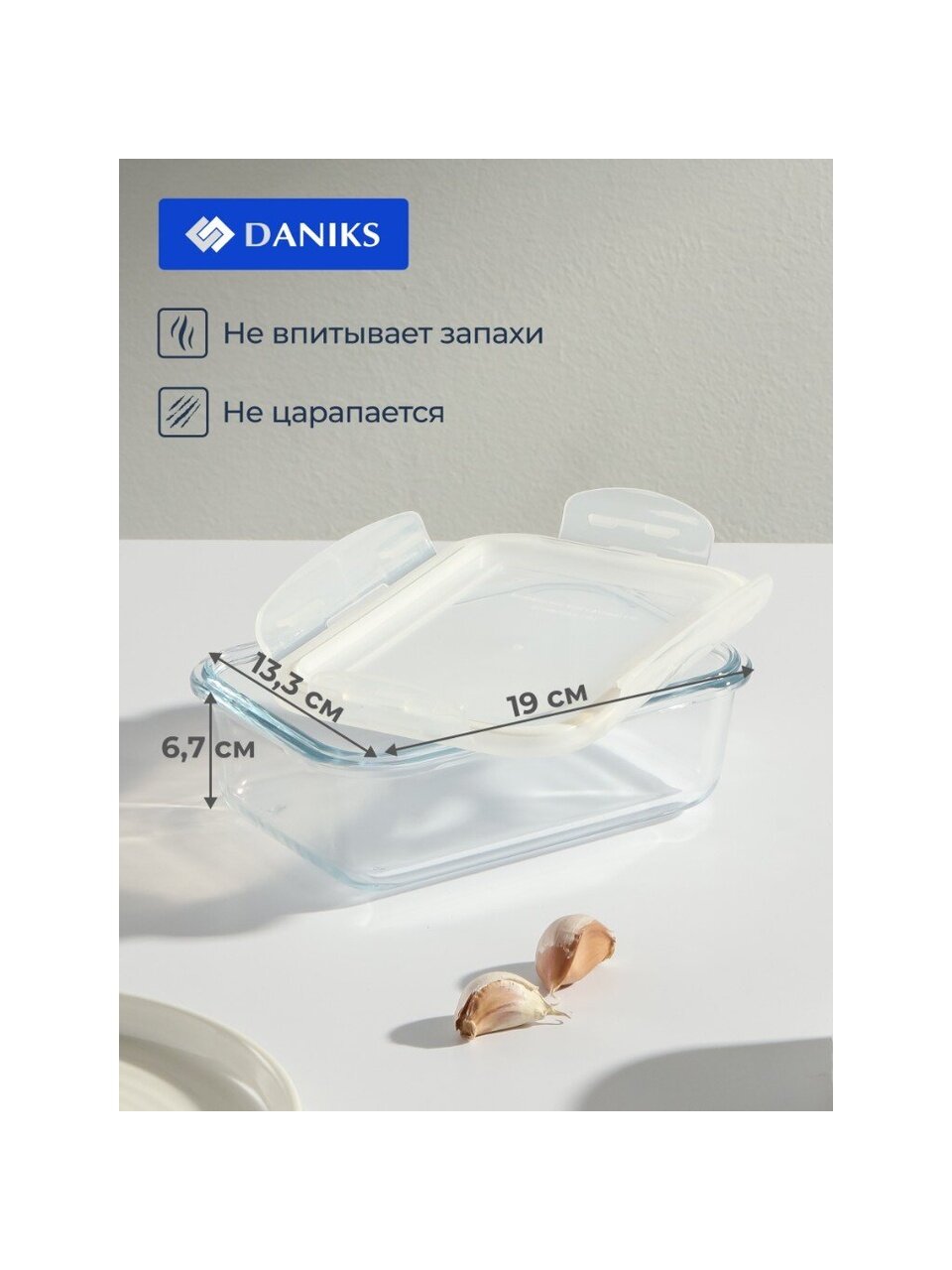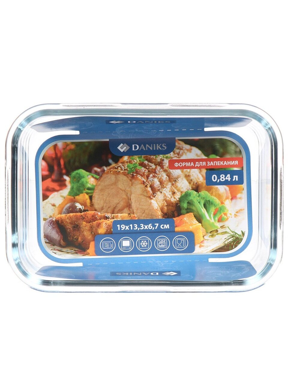 Форма для запекания Daniks из жаропрочного стекла 13.3х19х6.7 см с крышкой: удобно готовить, хранить и брать с собой — идеальный выбор для дома и дачи.