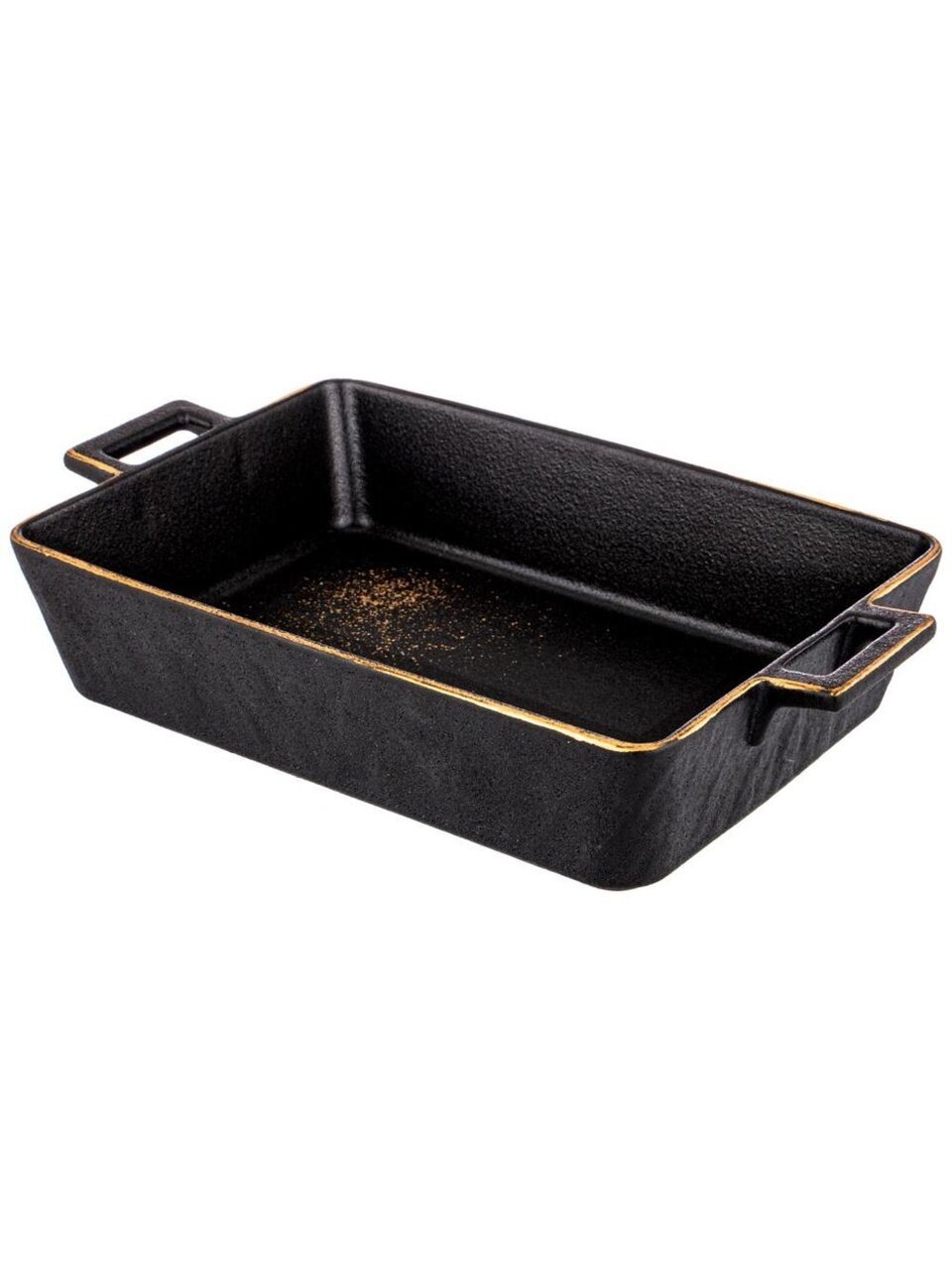 Блюдо для запекания Bronco Midnight gold 25 см: премиальный фарфор, стильный черный дизайн, идеально для курицы, рыбы и пирога дома и на даче.