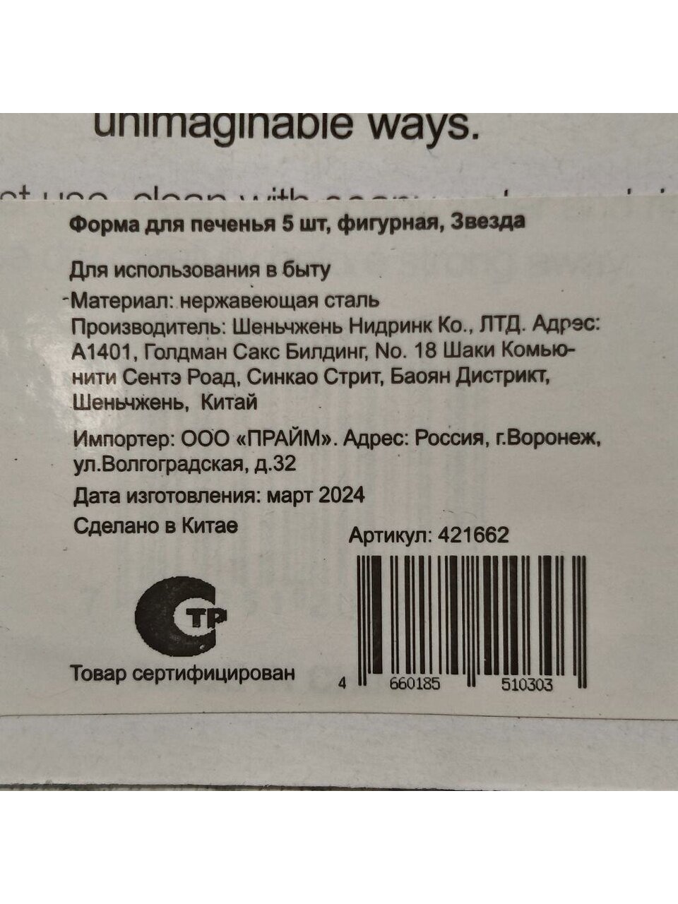 Вы можете приобрести «Форма для печенья сталь, 5 шт, фигурная, Звезда, Y4-5677» и другие товары в нашем интернет-магазине в Воронеже по низким ценам и с бесплатным самовывозом.