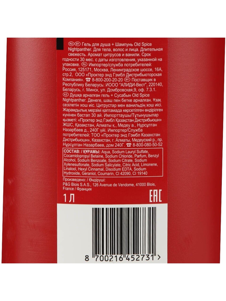 Гель для душа и шампунь Old Spice Nightpanther 3 в 1, 1 л — свежесть и уход для мужчин на каждый день: экономьте время, наслаждайтесь стойким ароматом, выбирайте лучшее для себя.