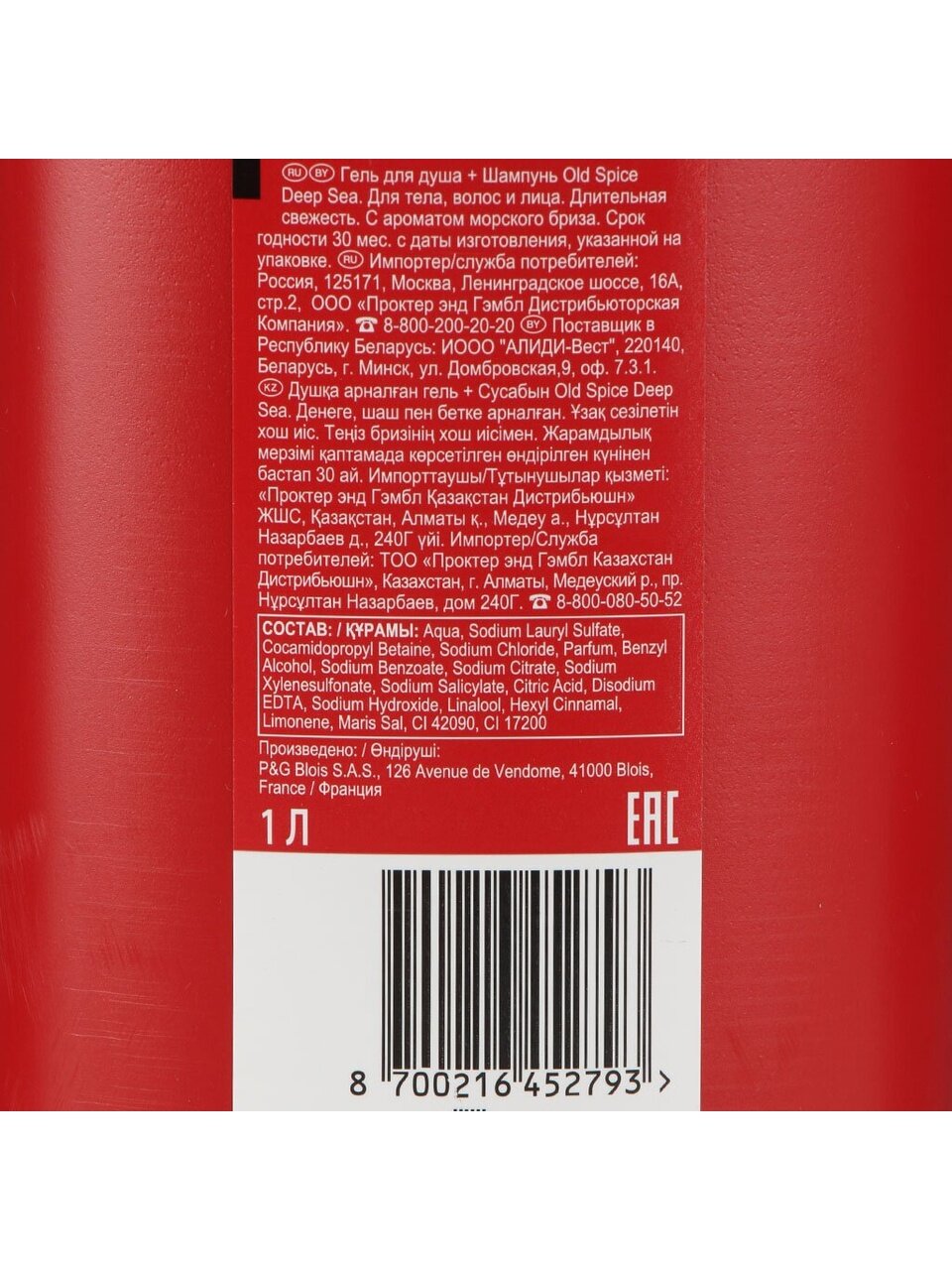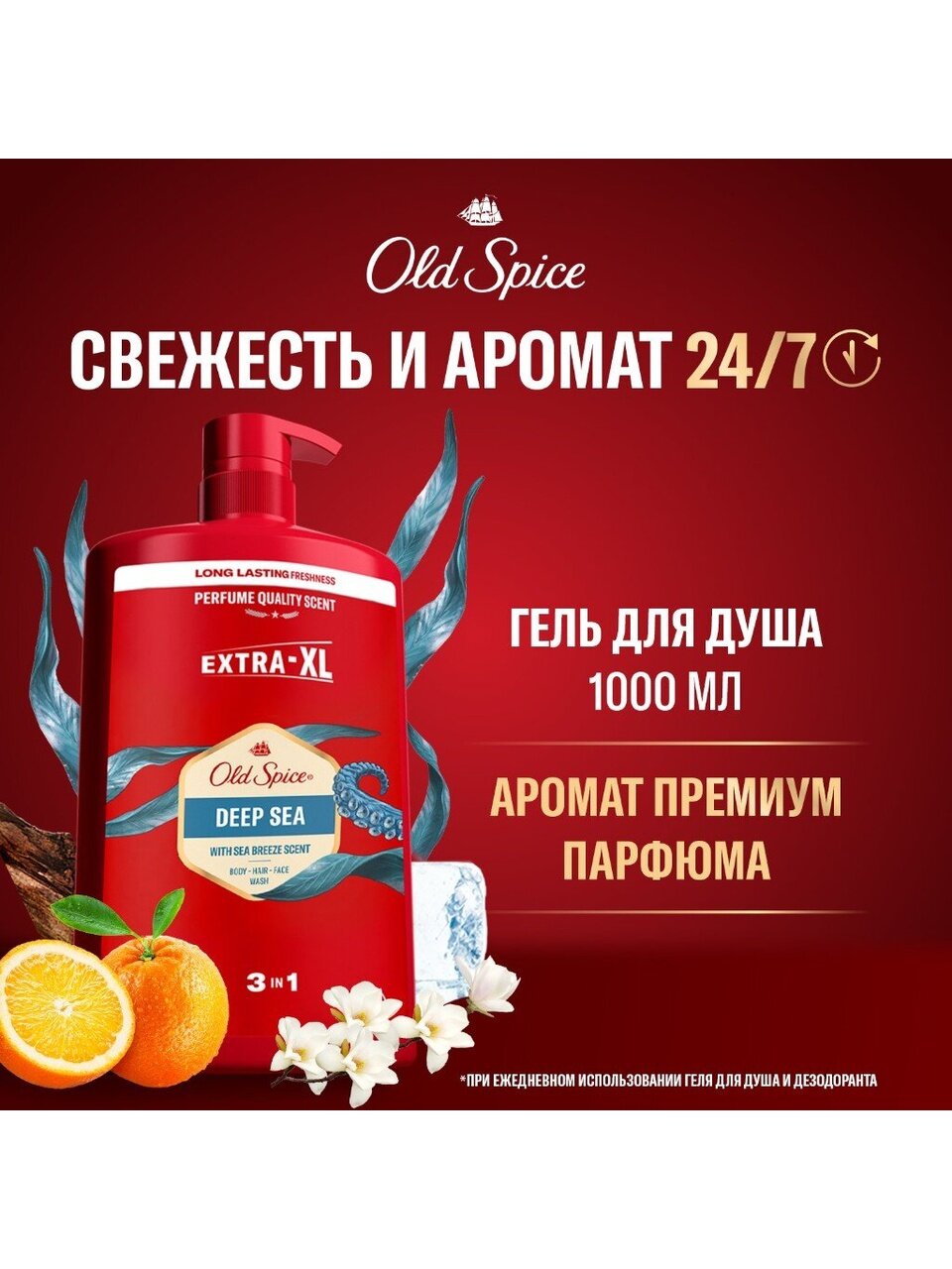 Old Spice Deep Sea 3 в 1 для мужчин, 1 л — свежесть океана и абсолютная чистота тела и волос в одном флаконе: экономия времени и уверенность на весь день.